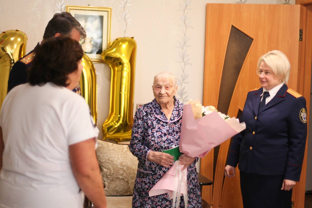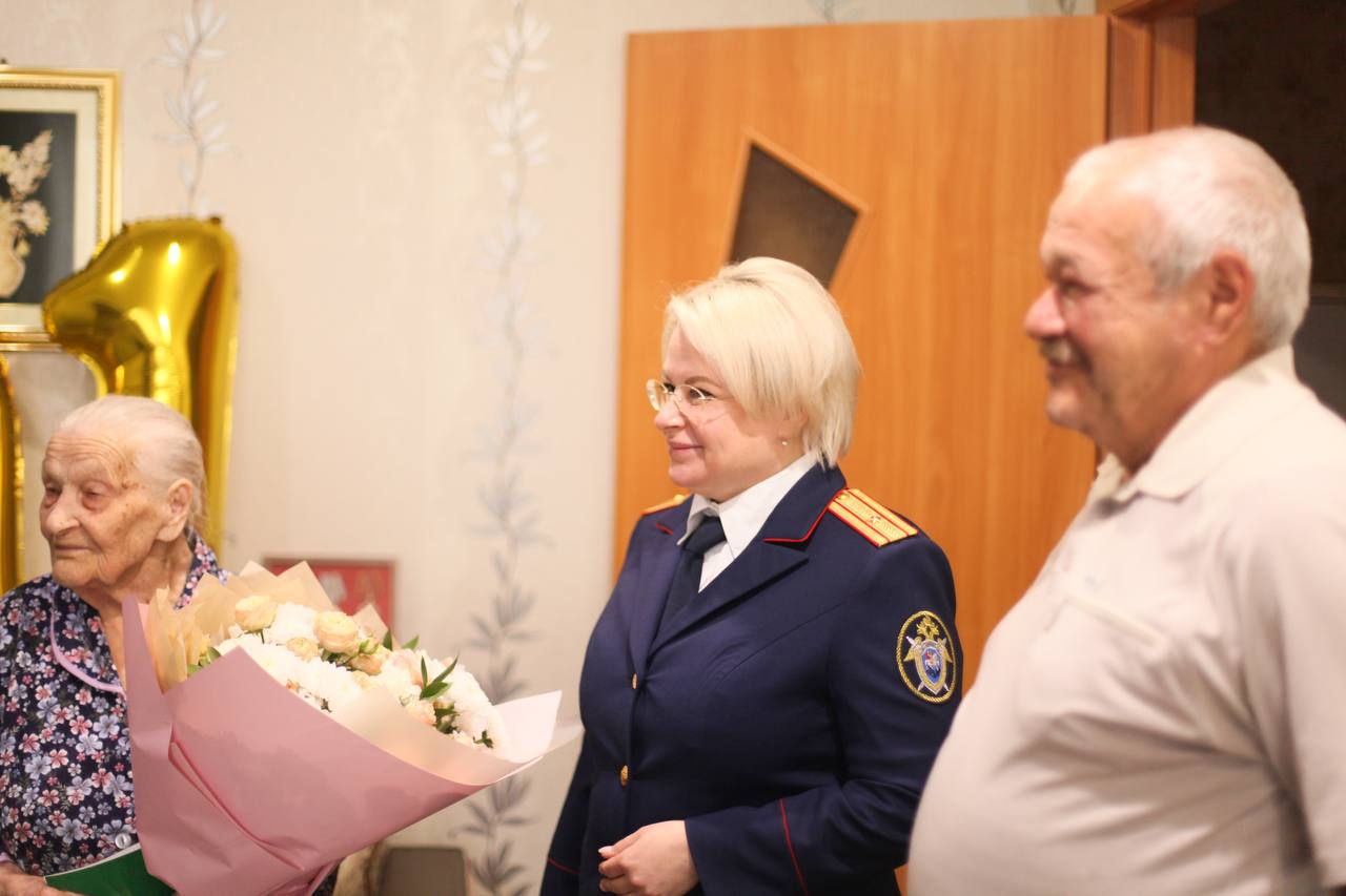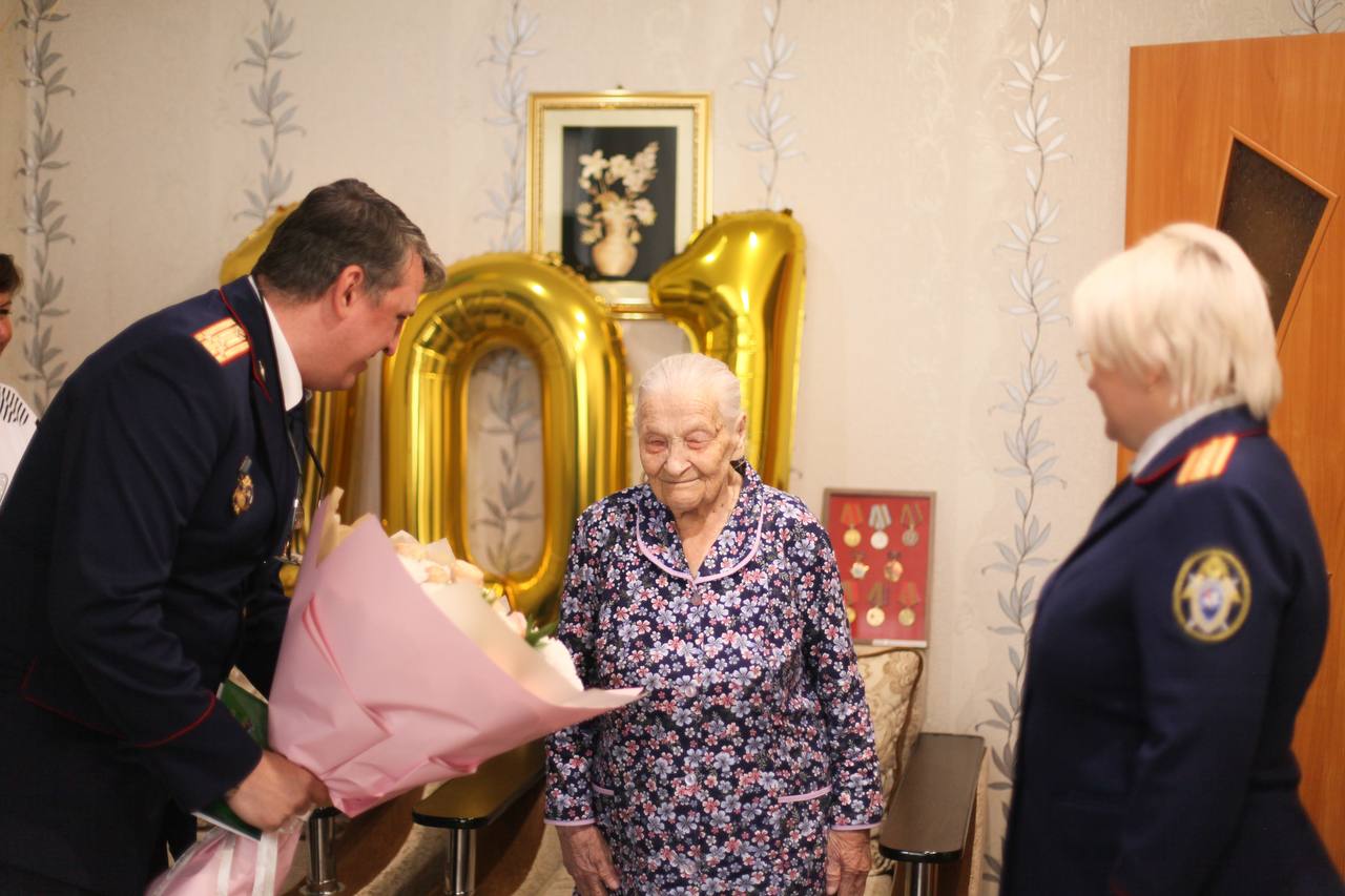 Сотрудники следственного управления выразили искреннее уважение ветерану и поблагодарили её за трудовой подвиг и вклад в историю региона. Ветерану труда были вручены цветы и памятные подарки.