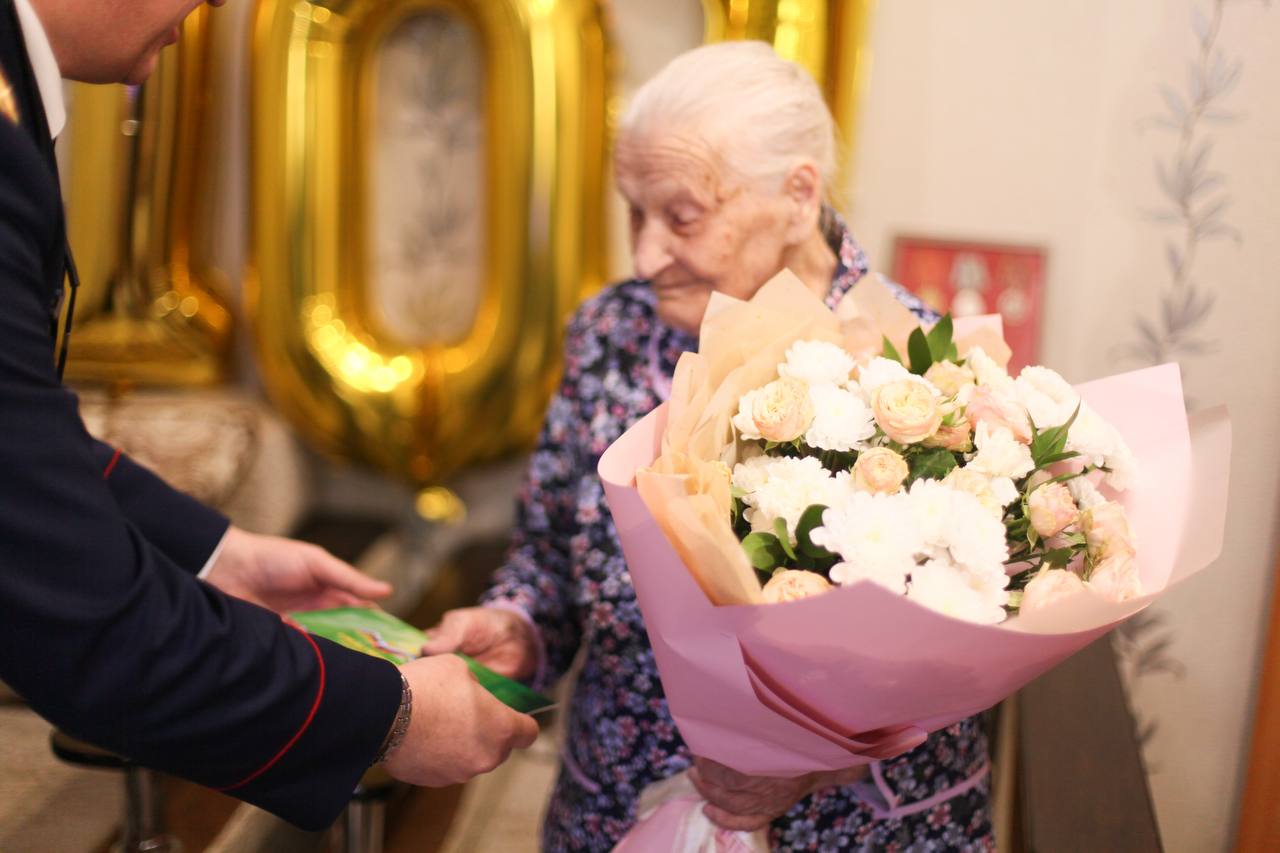 Представители ведомства поздравили долгожительницу с днем рождения и пожелали ей крепкого здоровья, бодрости духа и семейного благополучия.