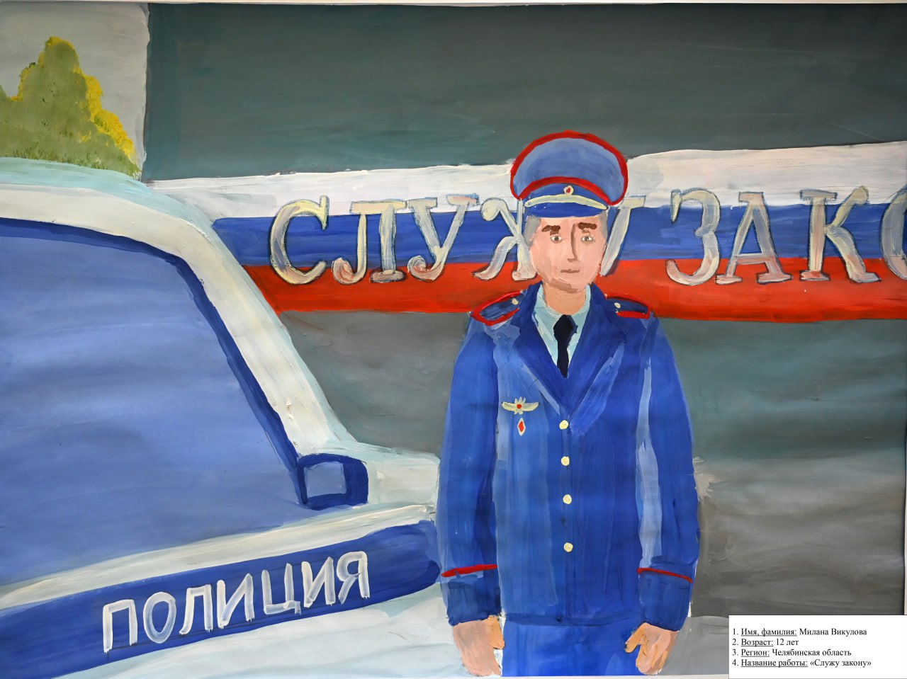 12-14 лет: Милана Викулова (Нязепетровск) с картиной «Служу закону».