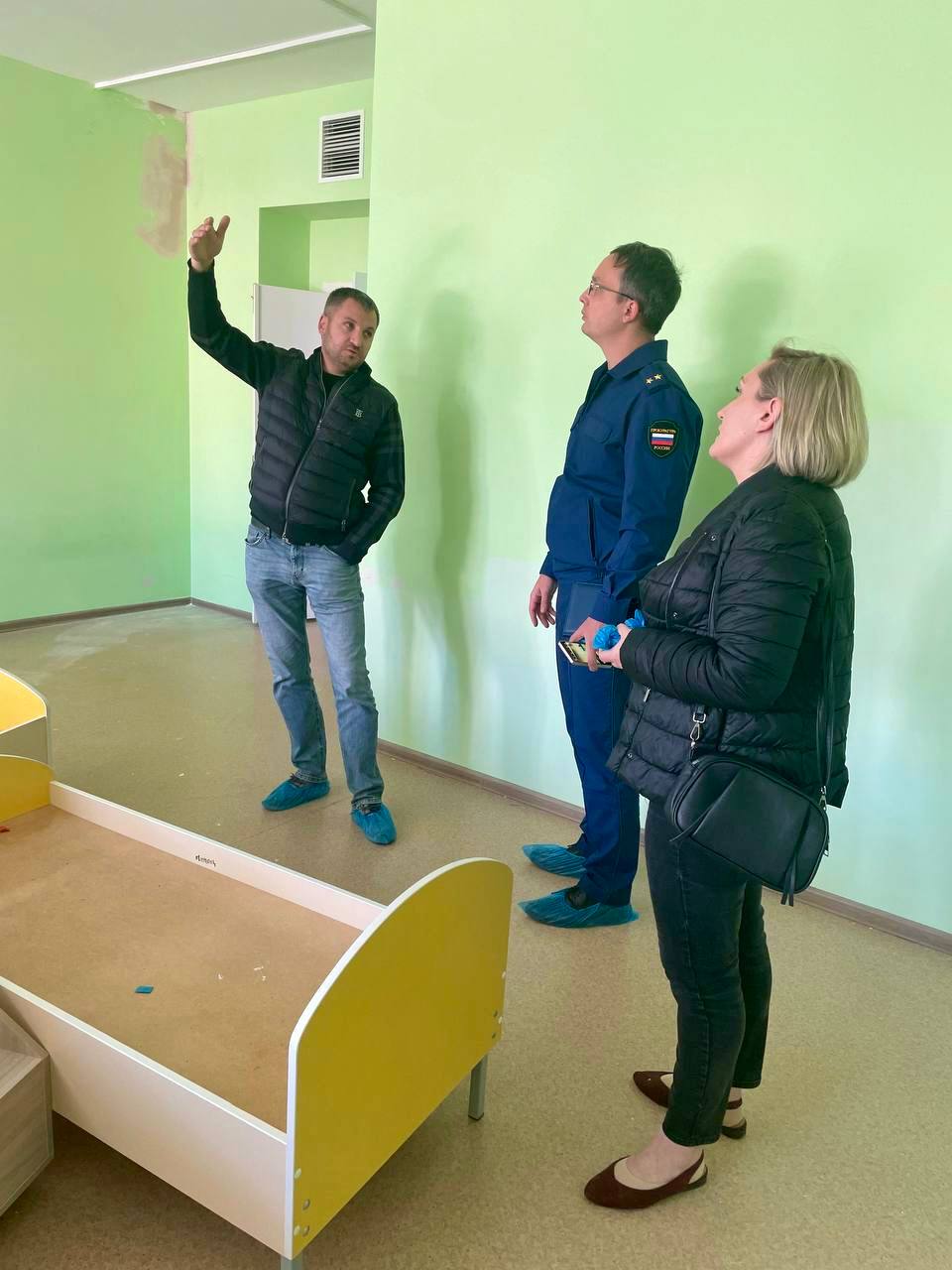 В рамках контроля за проведением ремонтных работ заместитель прокурора района выехал в дошкольное учреждение с представителями подрядчика.