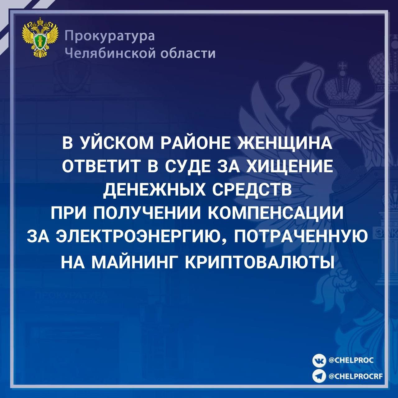 По версии следствия, работник детского сада, имея право на получение меры социальной поддержки в виде компенсации расходов на оплату жилищно-коммунальных услуг, на протяжении 2,5 лет подавала в МКУ «Управление образования Уйского муниципального района» документы для выплаты компенсаций.Установлено, что значительная часть потребленной электроэнергии использована не для бытовых нужд, а с целью извлечения прибыли при майнинге криптовалюты супругом, который организовал в жилом доме работу «майнинг-фермы».
