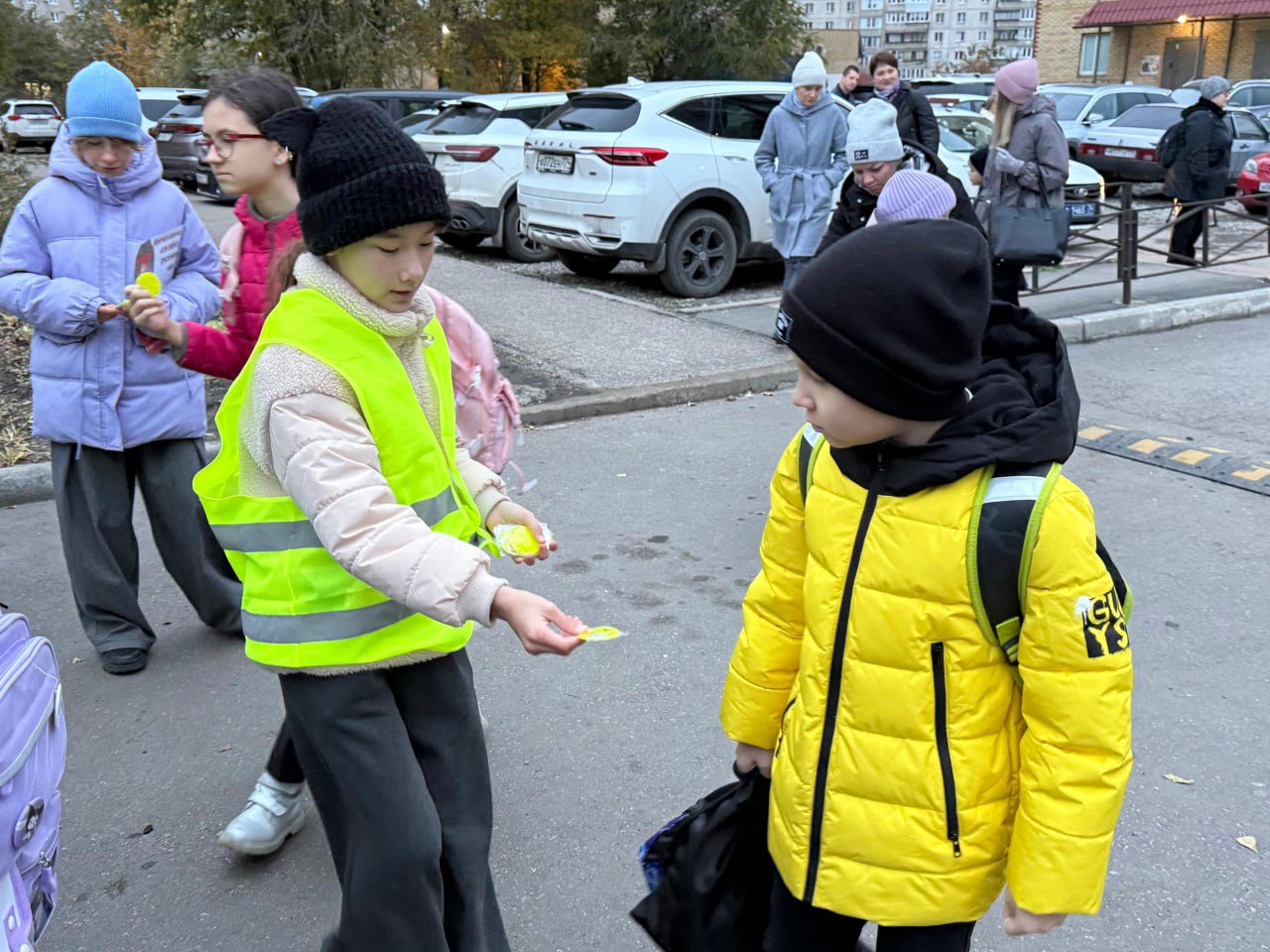 Вблизи МОУ «СОШ №1» города Магнитогорска ребята из движения ЮИД совместно с Родительским патрулём вышли поддержать акцию «Ребёнок – главный пассажир». Они раздавали прибывающим на уроки школьникам световозвращающие элементы и памятки по безопасному поведению на проезжей части. Не остался равнодушным к вопросам безопасности детей-пассажиров и представитель добровольной народной дружины, механик ООО «Автотранспортное управление» Андрей Сулимов, который присоединился к мероприятию и совместно с сотрудниками проводил профилактические беседы с водителями-родителями.