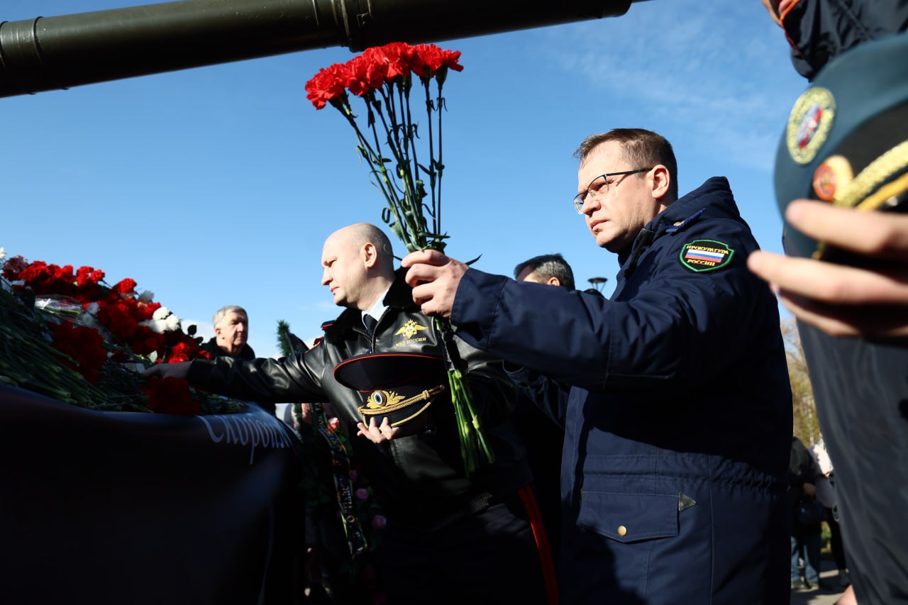 Совместно с Губернатором региона и руководителями правоохранительных органов прокурор области возложил цветы к стихийному мемориалу в городском парке Победы.