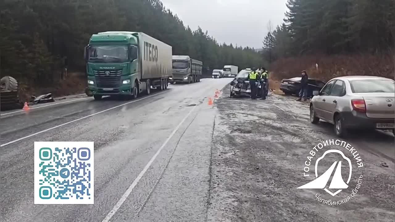 В Катав-Ивановском районе на 1648 км автодороги М-5 «Урал» произошло столкновение 3-х автомобилей.