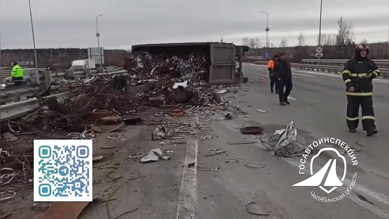 На трассе М-5 «Урал» в Сосновском районе произошло опрокидывание грузовика.