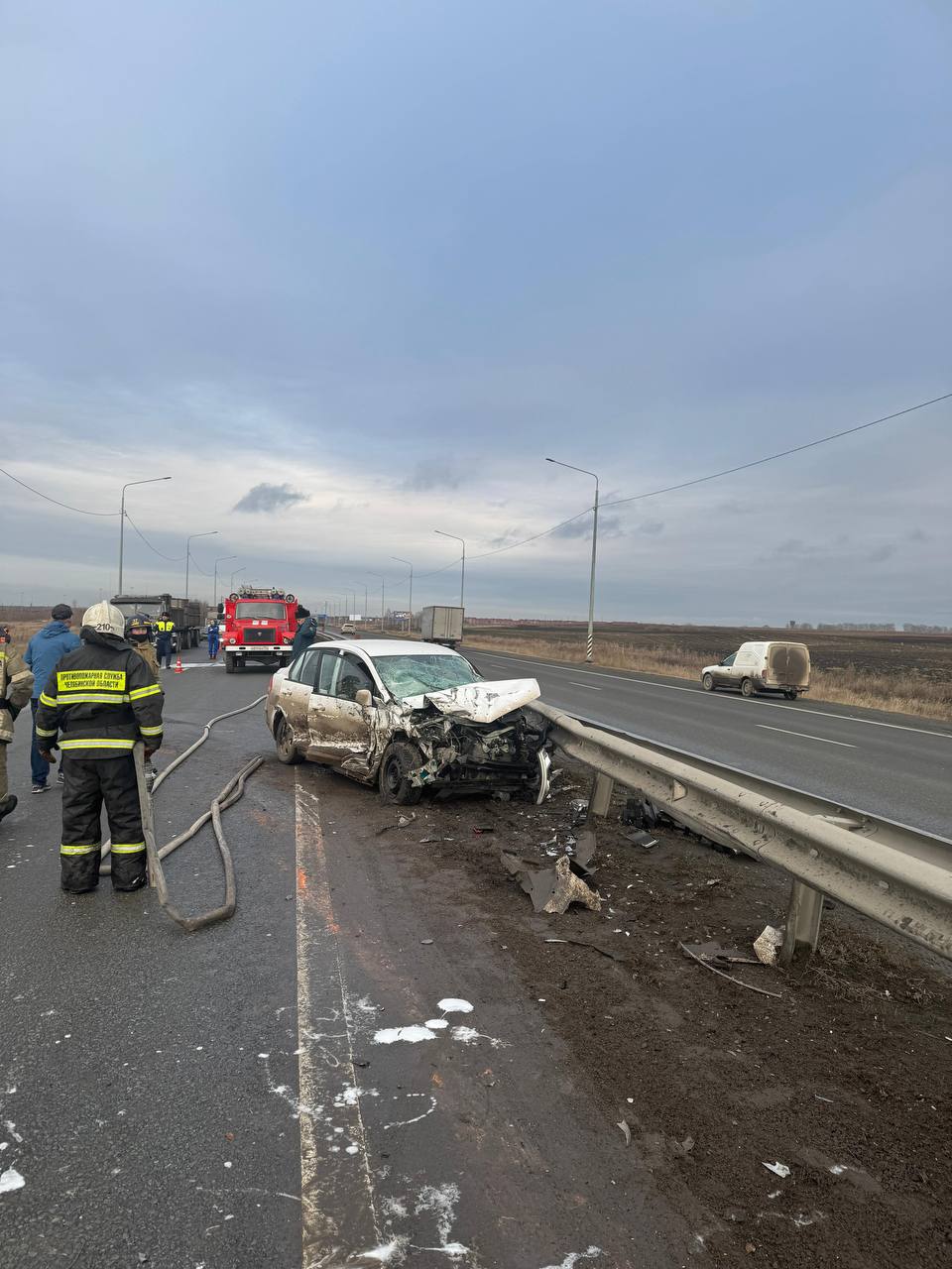 Водитель 1982 года рождения, управляя транспортным средством ГАЗ (бензовоз), по предварительным данным при неустановленных обстоятельствах, не справился с управлением, совершил столкновение с двигавшимся попутно слева транспортным средством «Ниссан Тиида», под управлением водителя 1961 года рождения. После столкновение бензовоз опрокинулся и произошел незначительный разлив топлива.