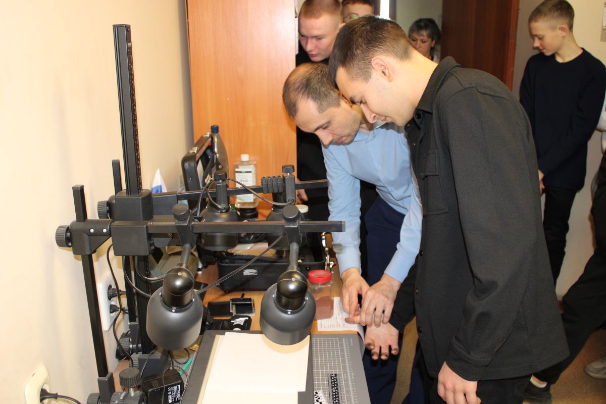 Продолжая погружение в особенности профессии полицейского, школьники посетили подразделение экспертов-криминалистов, где в сопровождении капитана полиции Романа Сергаринова познакомились с процедурой дактилоскопирования. Самые смелые, примерив роль криминалиста и вооружившись специальной кисточкой с порошком, выявили следы рук на поверхности, сохранив их на дактопленке.