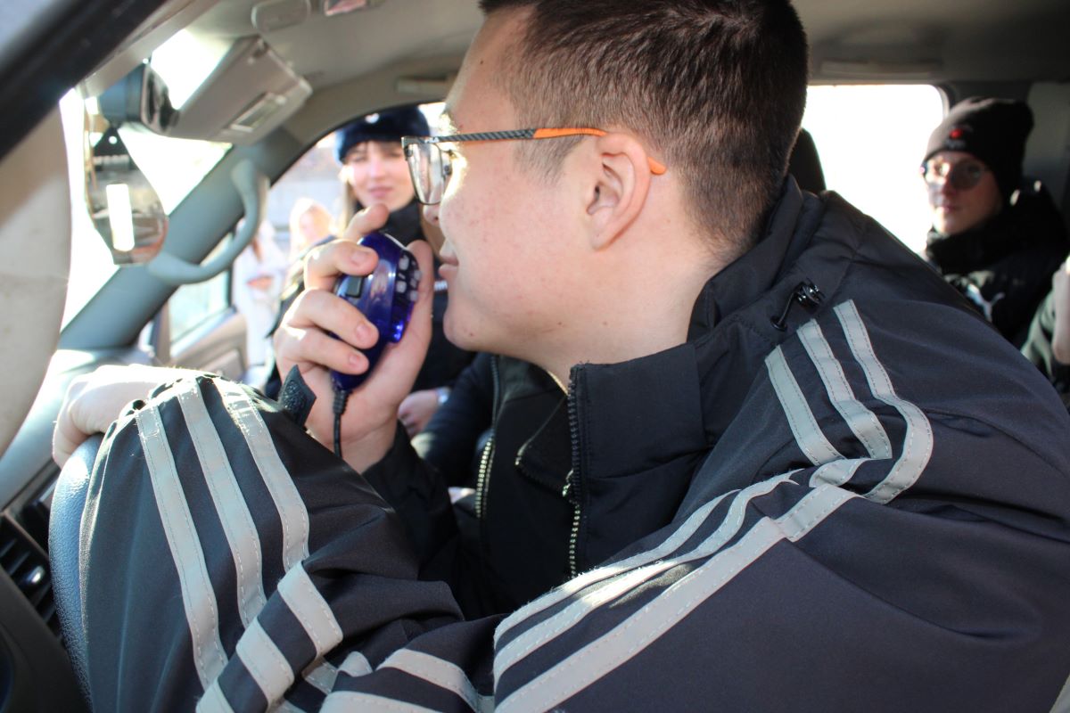 Инспектор по пропаганде безопасности дорожного движения Госавтоинспекции лейтенант полиции Анастасия Сосновская рассказала об устройстве служебного автомобиля и разрешила ребятам посидеть в салоне. Они увлеченно рассматривали интерьер легковой автомашины, а за рулем УАЗа «Патриот» парни и девчонки опробовали специальное говорящее устройство, моделируя ситуацию преследования нарушителя ПДД.