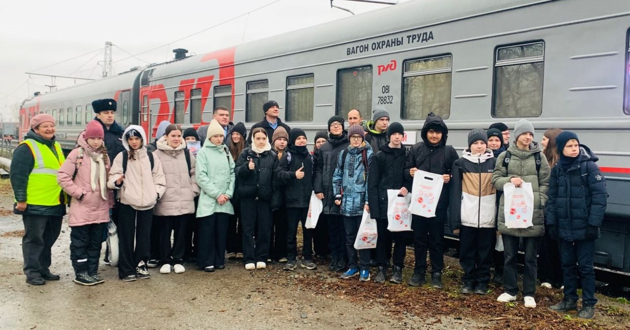 На экскурсию в тематический поезд были приглашены учащиеся школ.