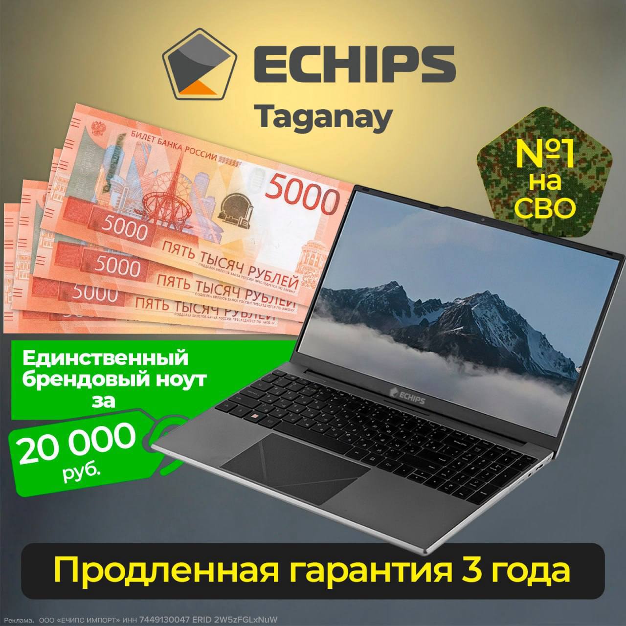 На WB в продаже — ограниченная партия брендовых ноутбуков с 3-летней продлённой гарантией по цене всего 20 000 руб. Челябинские Echips — ноуты проверенные и надёжные. С 2022 года Echips — самый популярный ноутбук на фронтах СВО, активно применяется нашими военными для наведения артиллерии и управления БПЛА. А всего с 2022 года в России продано больше четверти миллиона ноутов челябинского бренда.
