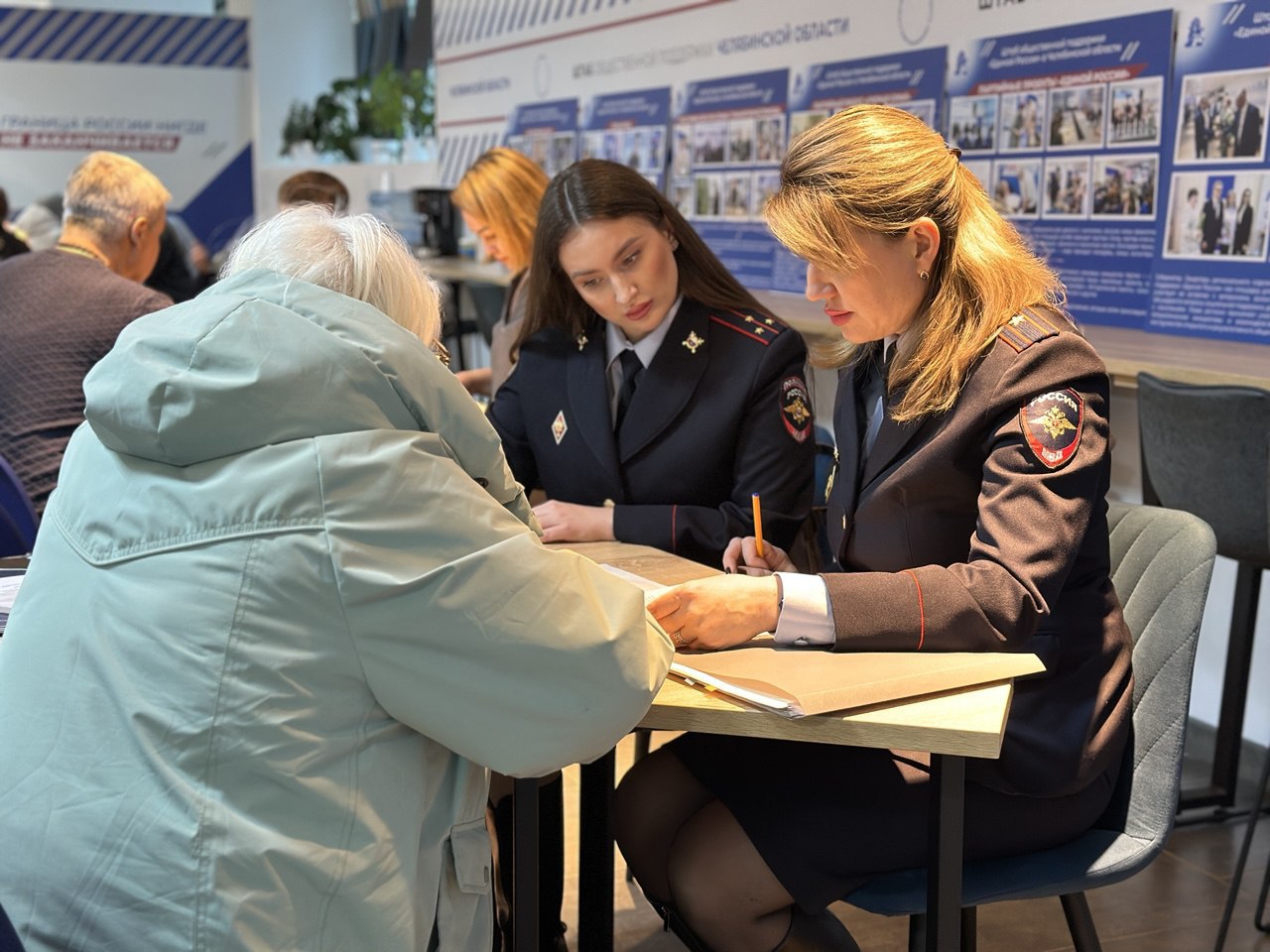 Консультирование граждан по вопросам, относящимся к компетенции органов внутренних дел России, провели врио заместителя начальника правового отдела майор внутренней службы Наталья Лосева, юрисконсульт отделения нормотворческой деятельности и правового информирования старший лейтенант внутренней службы Вероника Борисенко и врио начальника отдела организации деятельности подразделений по делам несовершеннолетних Управления организации деятельности участковых уполномоченных полиции и подразделений по делам несовершеннолетних ГУ МВД России по Челябинской области майор полиции Дина Чиняева.