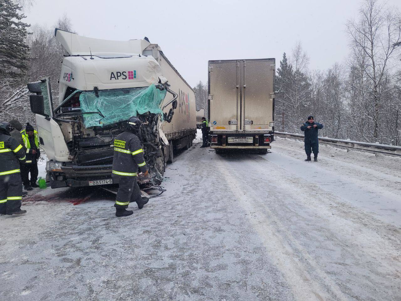 По предварительным данным, водитель грузового автомобиля «Scania», двигавшийся в сторону Москвы, совершил столкновение с впереди идущим грузовиком «DAF». После удара «Scania» выехал на полосу встречного движения, где произошло лобовое столкновение с автомобилем «Shacman», двигавшимся в направлении Челябинска.