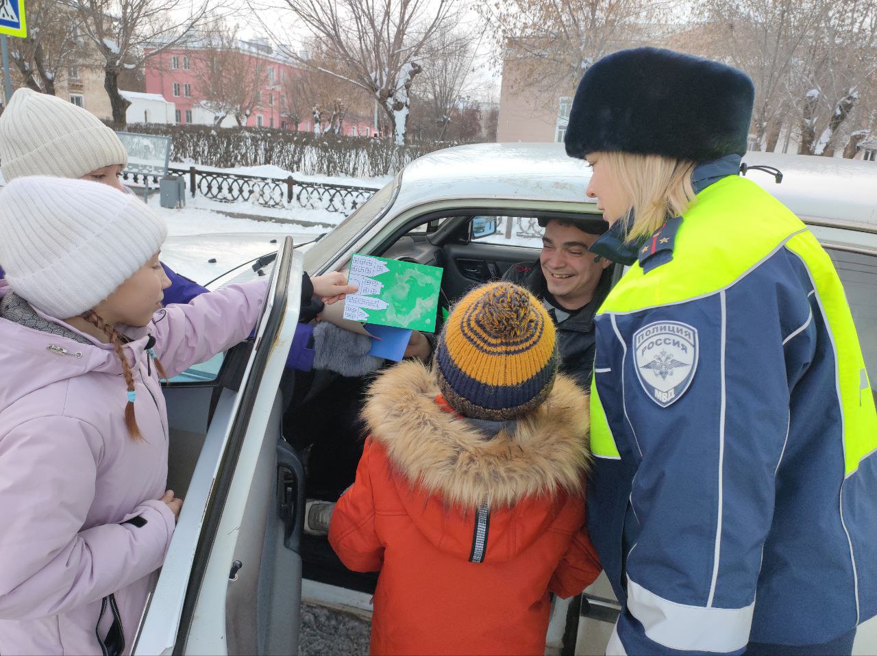 Затем действие переместилось на дороги района. К полицейскому Деду Морозу и Снегурочке присоединились сотрудники Госавтоинспекции и их юные помощники – ученики третьего класса школы № 5. Водителей, остановленных для проверки документов, ждал необычный и душевный сюрприз: они получали от детей самодельные новогодние открытки, а от полицейских – ароматные мандарины с пожеланиями безопасного пути и примерного соблюдения правил дорожного движения.
