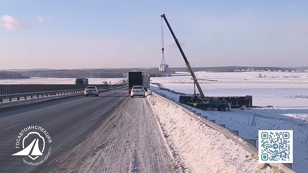 На 1808 км автодороги М-5 «Урал» произошел съезд в кювет грузового транспортного средства.