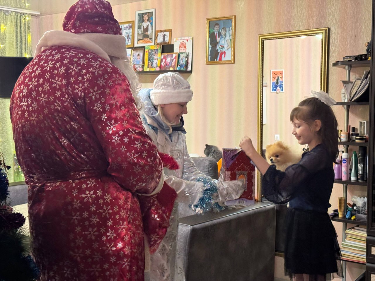Полицейский Дед Мороз и Снегурочка принесли ребятам подарки и праздничное настроение. Каждый визит сопровождался тёплыми поздравлениями, создавая для детей ощущение новогоднего чуда.