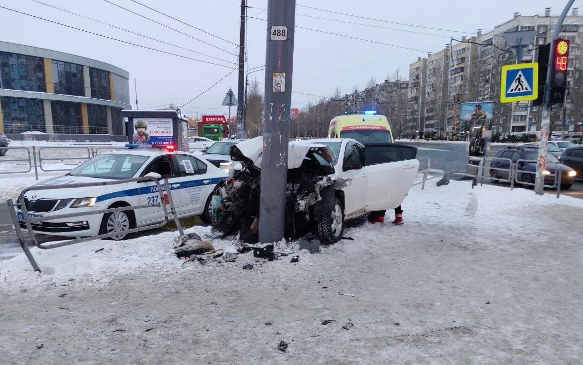 в 08:20 пр. Победы, у д. 394, 32-летняя водитель-женщина, управляя автомобилем «Мазда 3» при повороте направо, совершила наезд на препятствие с последующим наездом на пешехода, находившегося на тротуаре.