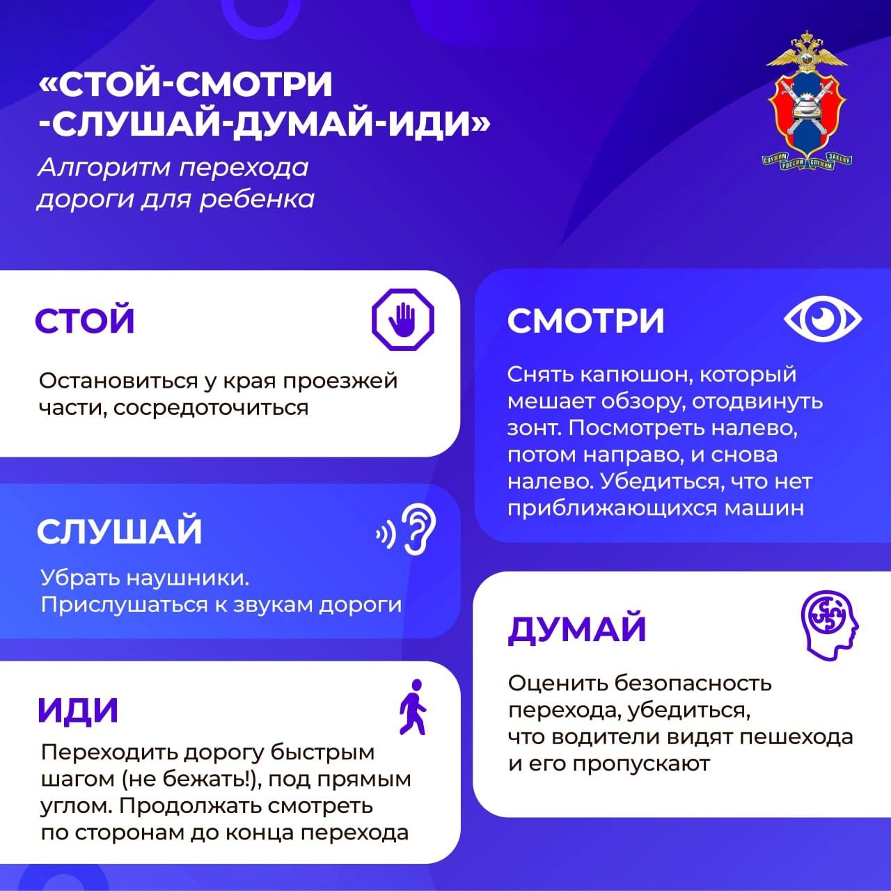Алгоритм перехода дороги для ребенка: «стой-смотри-слушай-думай-иди»