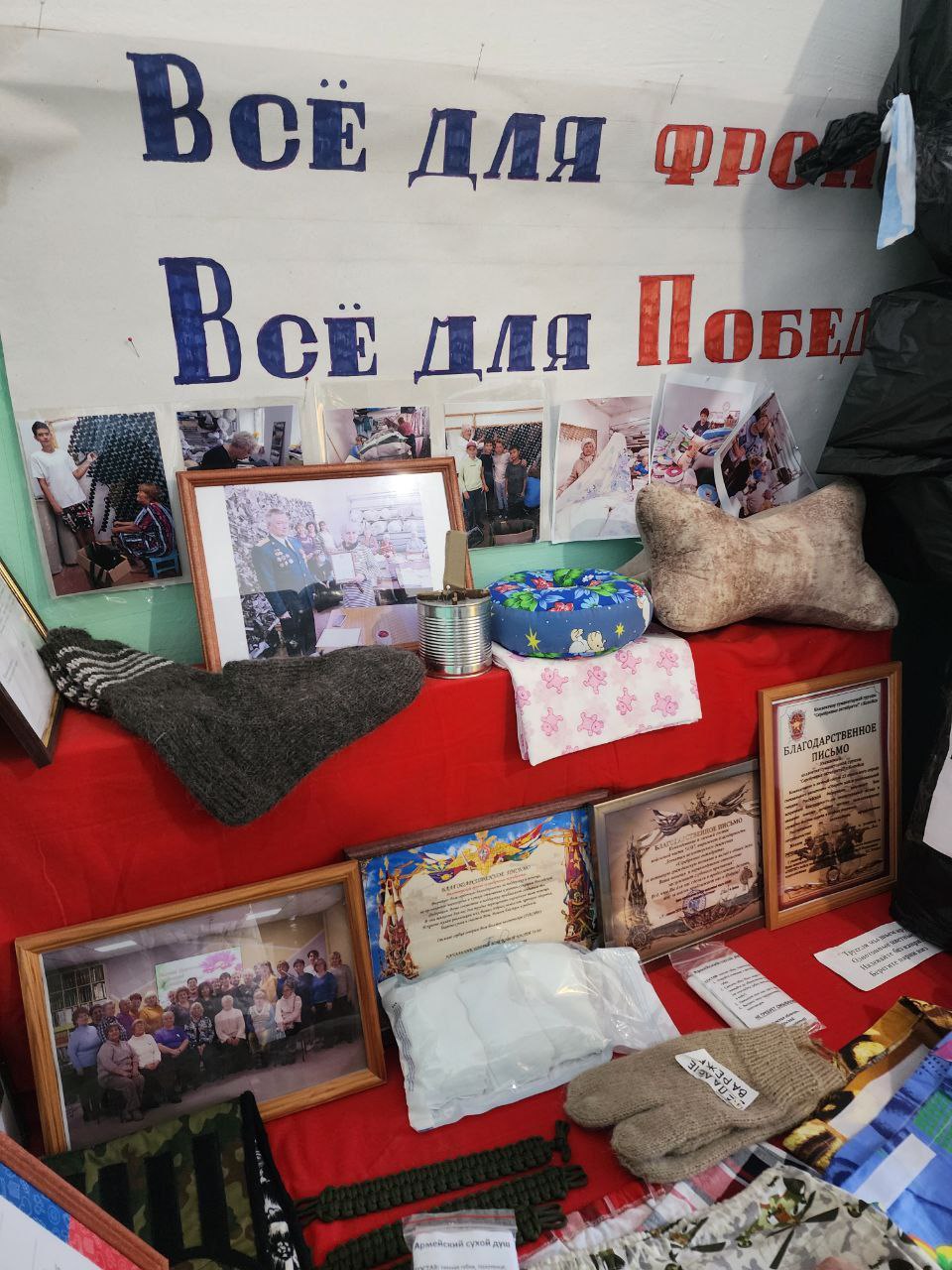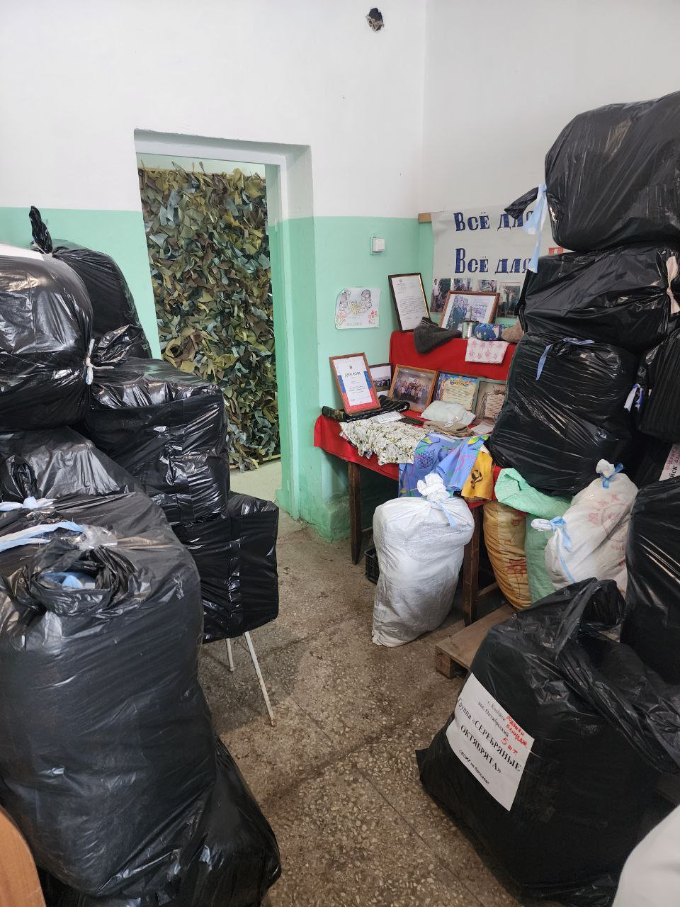 Сегодня объединение насчитывает более 50 человек. Женщины рассказали общественнику, что сперва по домам вязали теплые вещи, теперь же у них появилось просторное помещение, безвозмездно предоставленное управляющей компанией. Здесь ежедневно кипит работа, а комнаты и коридор постоянно заставлены готовыми к отправке на передовую огромными мешками с продукцией. Свыше 25 000 предметов отправили в течение года волонтеры для поддержки наших бойцов.
