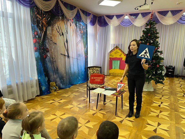 В ходе беседы «Безопасное поведение на дороге в зимний период» и развивающих игр «Будь внимателен!», «Важные знаки» дети повторили значения сигналов светофора и дорожных знаков, правила перехода проезжей части. Особое внимание было уделено необходимости использования световозвращающих элементов на одежде в темное время суток, а также важности применения детских удерживающих устройств и ремней безопасности при поездках в автомобиле.