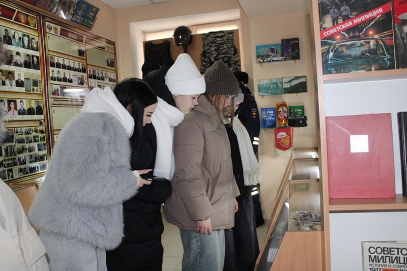 С представленными экспозициями студентов познакомила представитель Общественного совета при МО МВД подполковник полиции в отставке Ирина Щеглова. Демонстрацию исторических ценностей общественник сопровождала увлекательным рассказом об истории становления и развития органов внутренних дел в различные временные периоды. Гости узнали о значимых событиях, которые формировали облик стража правопорядка, и о судьбах тех, кто боролся с преступностью, оберегая покой земляков. Отдельное внимание Ирина Борисовна уделила экспозиции музея, посвященной Великой Отечественной войне и сотрудникам милиции, которые с честью и достоинством прошли испытание фронтом.