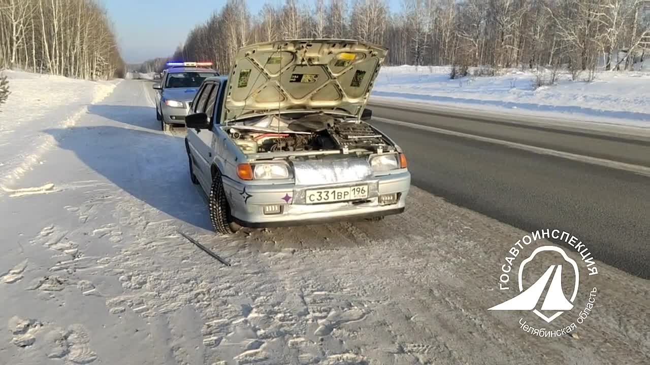 На 26 км автодороги «Западный обход города Челябинска» экипаж ДПС оказывает помощь водителю легкового автомобиля.