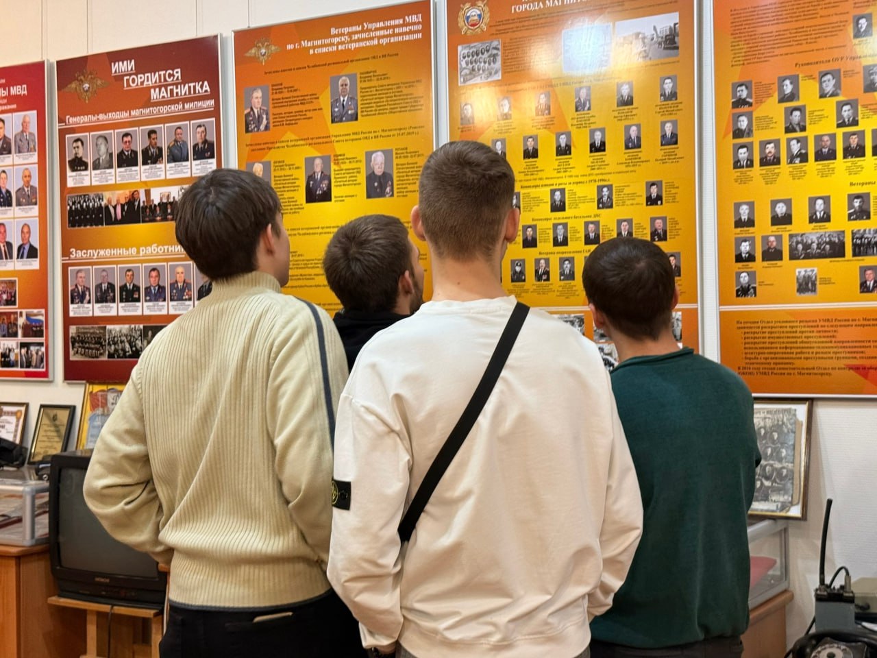 Встреча началась с посещения дежурной части, где студенты увидели, как оперативно принимаются и обрабатываются сообщения от граждан. Затем гостей провели в Музей истории УМВД. Его директор, подполковник милиции в отставке Александр Емельянов, увлекательно рассказал об этапах становления магнитогорского гарнизона, продемонстрировал редкие экспонаты и почтил память сотрудников, погибших при исполнении служебного долга.
