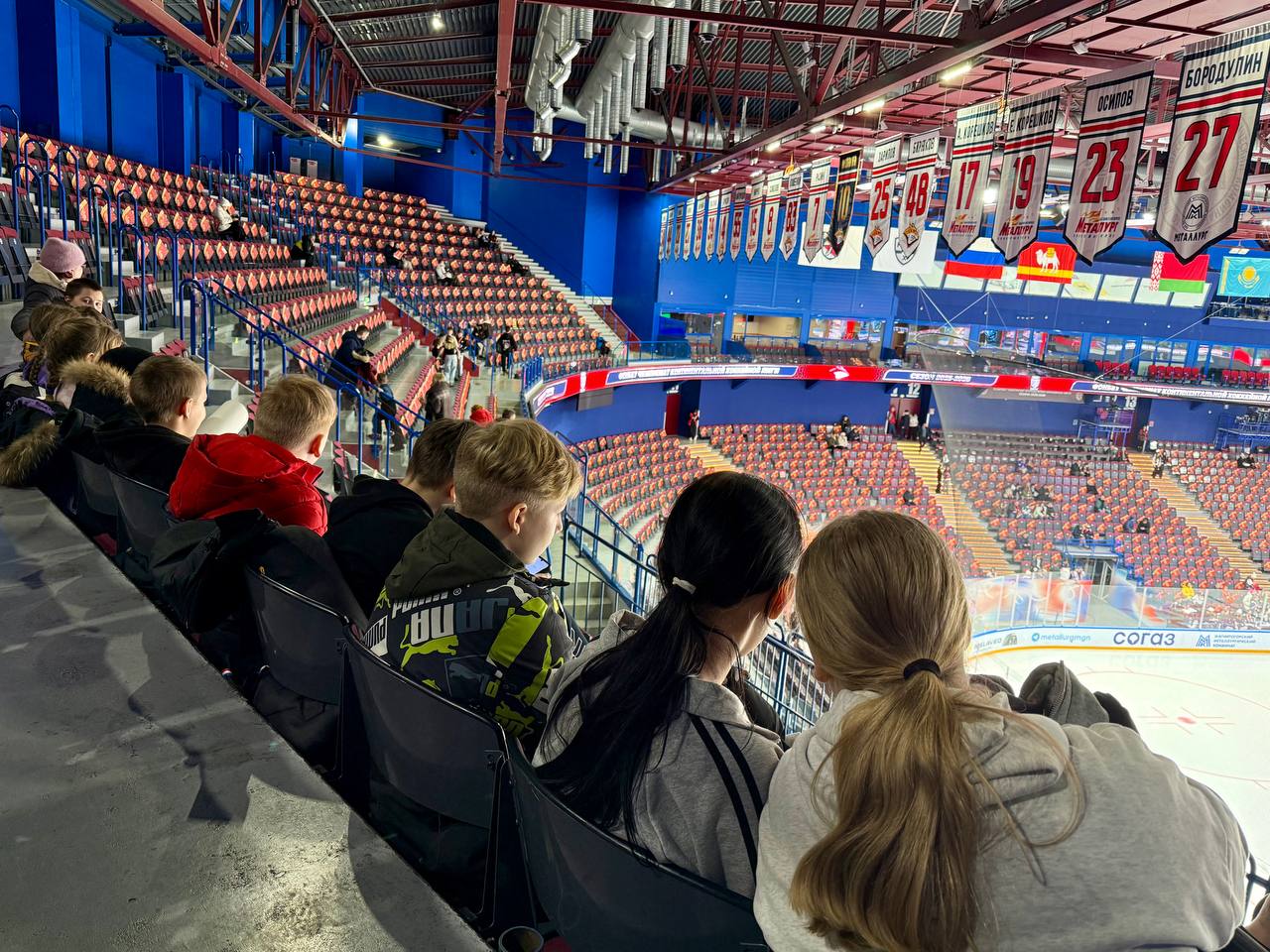 Затем, заряженные впечатлениями и новыми знаниями, воспитанники центра «Надежда» отправились на трибуны, где с невероятным азартом поддерживали хоккеистов «Металлурга», полностью погрузившись в незабываемую атмосферу большого спорта. Хоккеисты не подвели юных фанатов, показав красивую игру и одержав со счетом 5:4 победу.