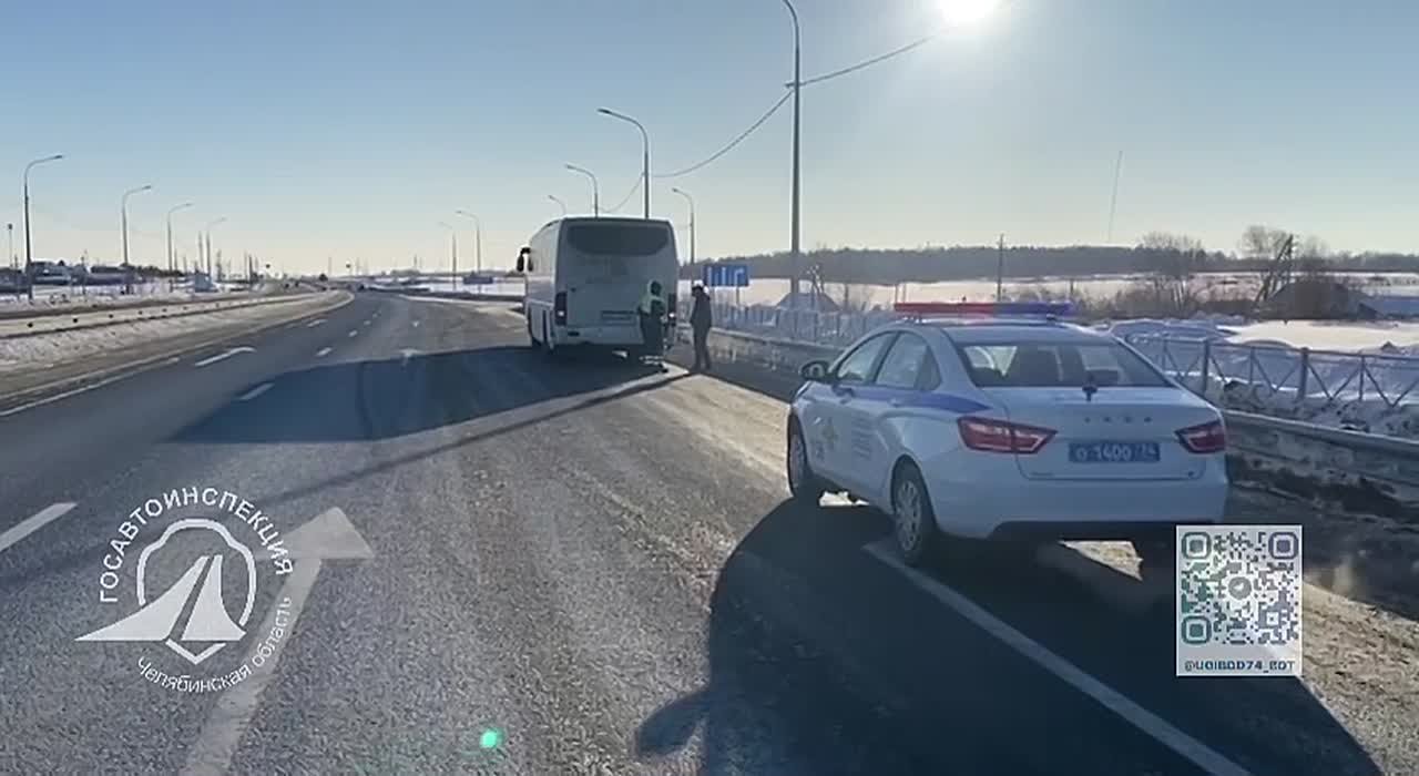 Сегодня на 55 км автодороги Челябинск-Троицк возникла непредвиденная ситуация: из-за технической неисправности был вынужден остановиться пассажирский автобус, следовавший по маршруту Челябинск-Магнитогорск.В салоне находилось 30 пассажиров.