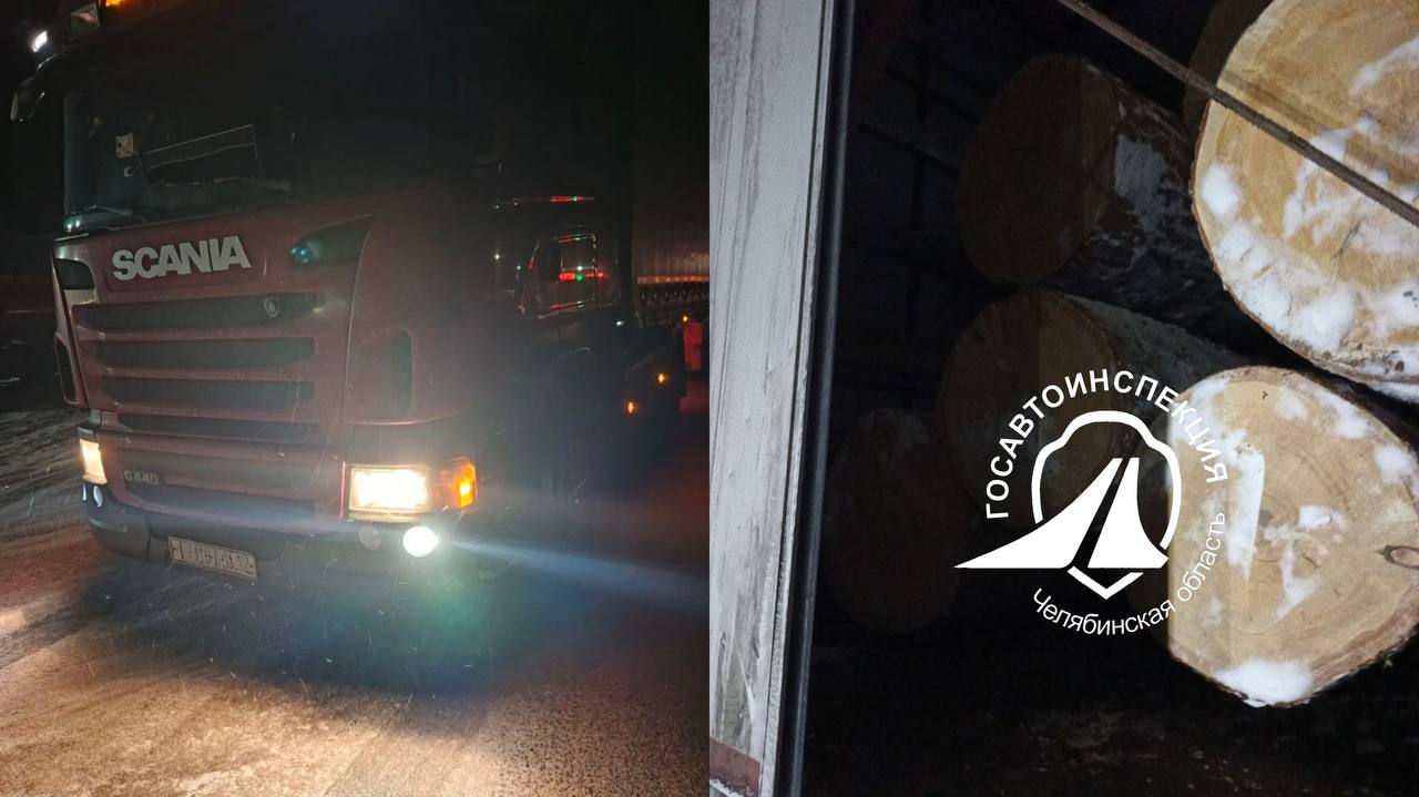Сотрудниками областного Полка ДПС Госавтоинспекции Челябинской области был остановлен грузовой автомобиль, водитель которого перевозил лес с нарушением правил перевозки.