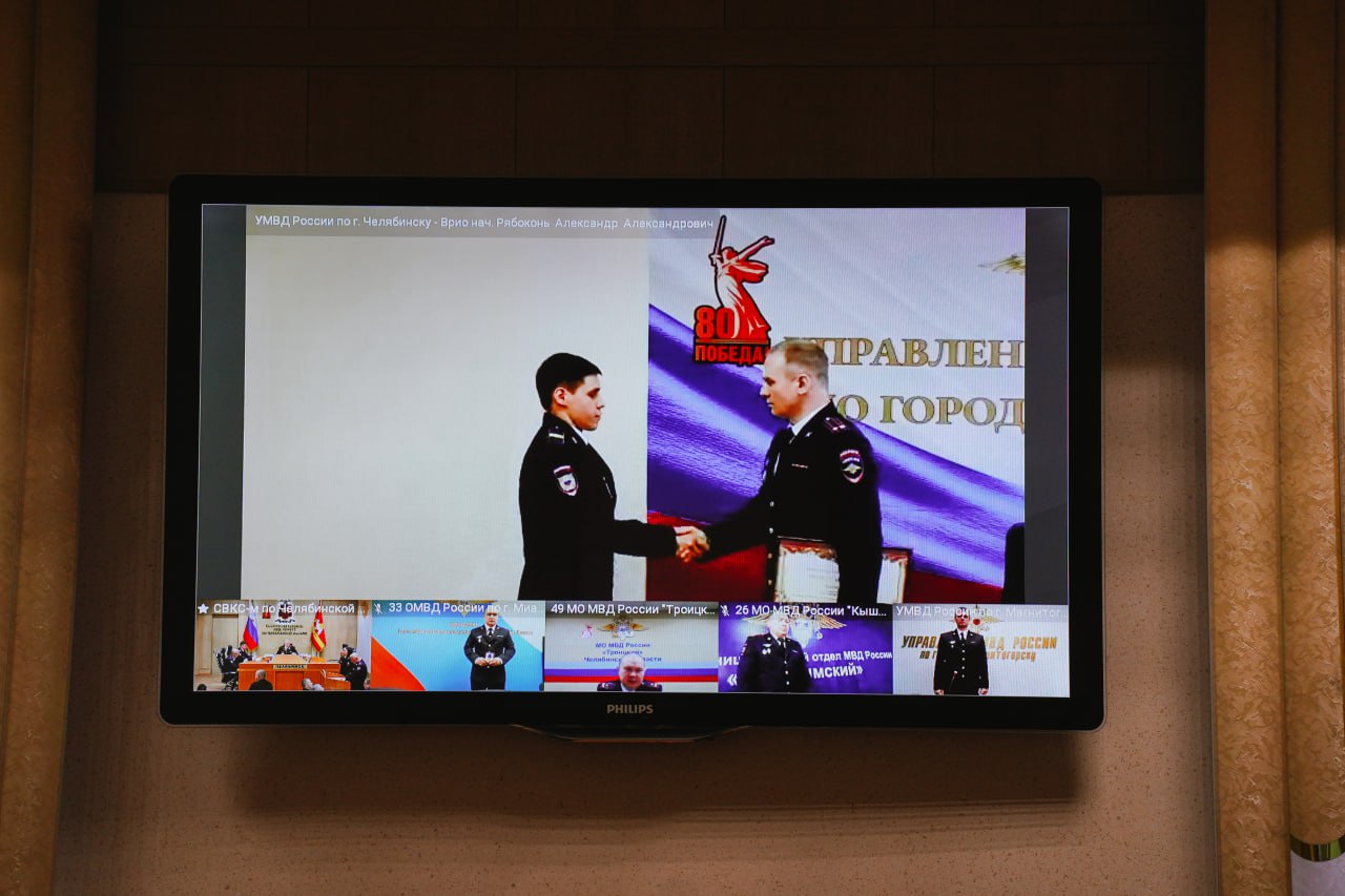 С вручением почетных грамот МВД России генерал-лейтенант полиции поздравил оперуполномоченных ОУР УМВД России по г. Челябинску, УМВД России по г. Магнитогорску, старшего оперуполномоченного ОУР МО МВД России «Кыштымский», участкового уполномоченного полиции отдела УУП и ПДН ОМВД России по г. Миассу лейтенанта полиции Богдана Бульчука и полицейского мобильного взвода ППСП челябинского управления МВД старшего сержанта полиции Егора Хусаинова.