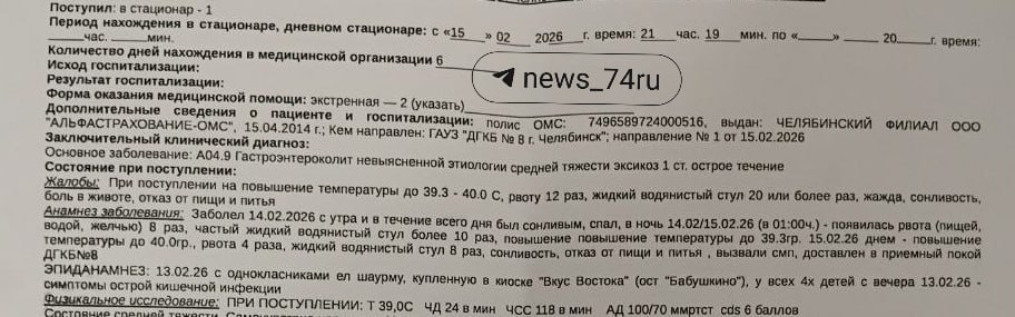 Сообщается, что несколько несовершеннолетних после употребления шаурмы обратились за медицинской помощью с признаками кишечной инфекции, некоторые госпитализированы и после получения лечения выписаны из больниц.