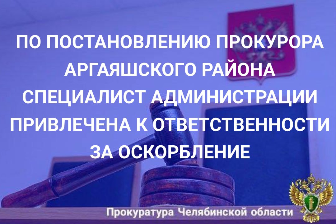 Прокуратура Аргаяшского района провела проверку по обращению руководителя управления администрации Аргаяшского муниципального округа о привлечении ведущего специалиста администрации к установленной законом ответственности за оскорбление.