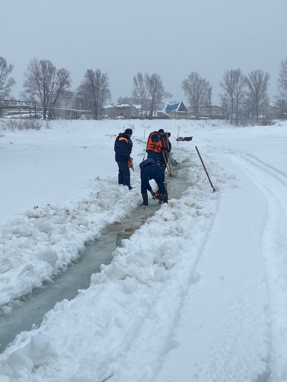 Сотрудниками Усть-Катавского поисково-спасательного отряда ГУ «Поисково-спасательная служба Челябинской области» проводятся мероприятия по распиловке льда на реке Сим.