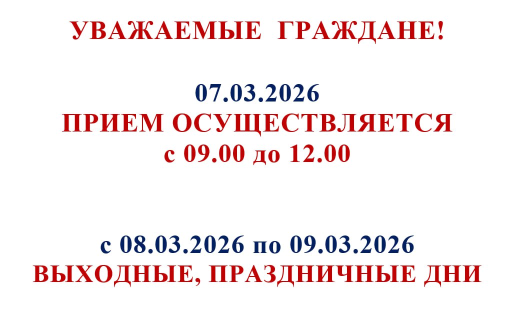 Управление по вопросам миграции ГУ МВД России по Челябинской области информирует о том, что 7 марта 2026 года прием граждан будет осуществляться с 09.00 до 12.00