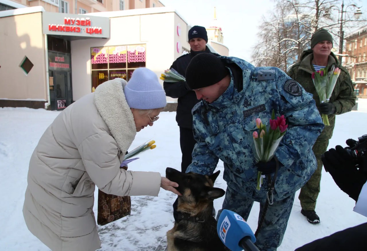 Одна из участниц акции поделилась впечатлениями: «Спасибо полиции за такое доброе мероприятие. Встреча с собакой мгновенно подняла настроение, а цветы будут радовать и напоминать о празднике еще долгое время».