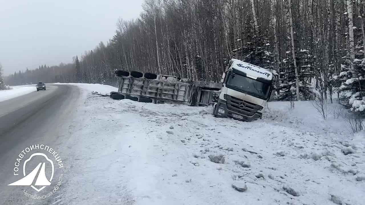 На 1684 км автодороги М-5 «Урал» произошел съезд в кювет грузового транспортного средства.
