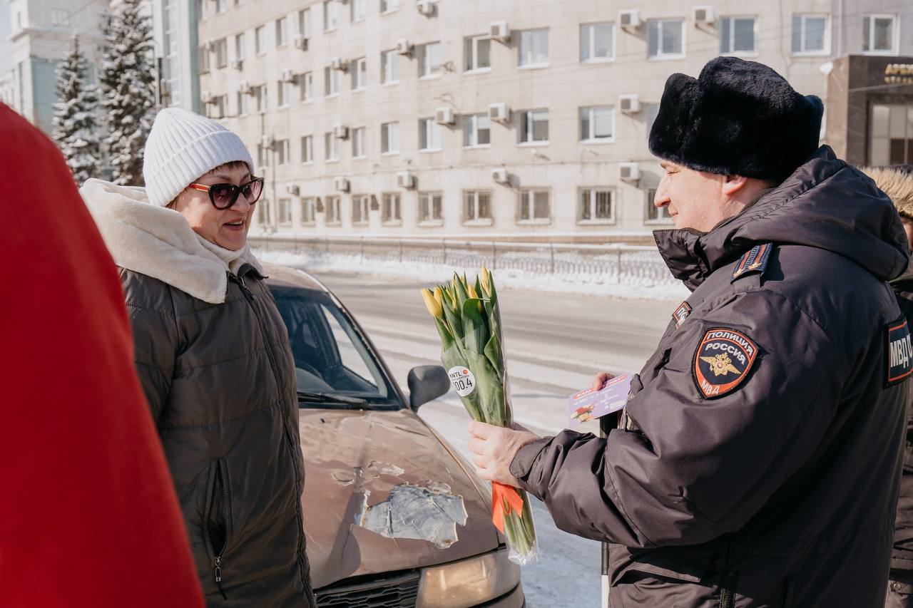 На дорогах столицы Южного Урала экипажи ДПС останавливали проезжающие автомобили, за рулем которых находились женщины. Полицейские желали дамам безаварийной езды, весеннего настроения и безопасных дорог, напоминая при этом о важности взаимовежливости.