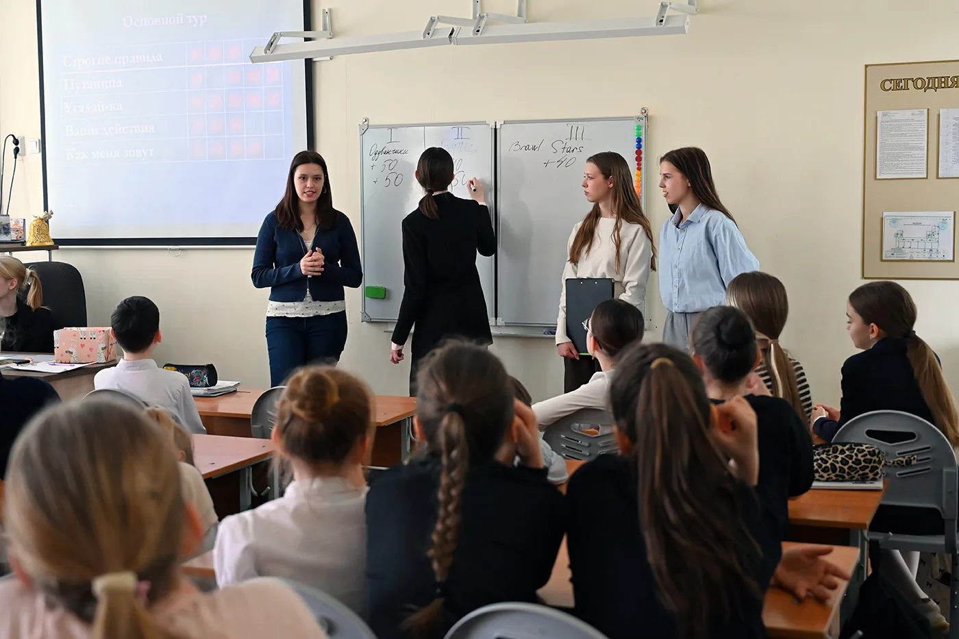 Урок по основам детской кибербезопасности для учащихся 4 класса гимназии № 10 в Челябинске провели их старшие товарищи, которым на следующий год предстоит выпускаться. Они рассказали ребятам о правилах поведения в онлайн-среде, а затем в формате интерактива провели игру. Классу было предложено разделиться на три группы и отвечать на вопросы различного уровня сложности. Побеждает та команда, участники которой дадут больше верных ответов и наберут наибольшее количество баллов.