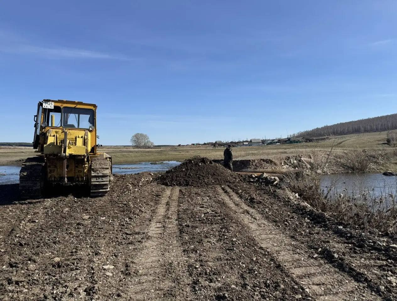 В связи с произошедшим разливом и затоплением переправы на реке Увелька проведены строительные работы по восстановлению и отсыпке переезда.
