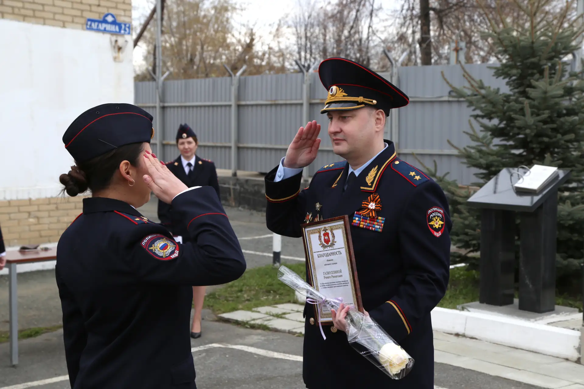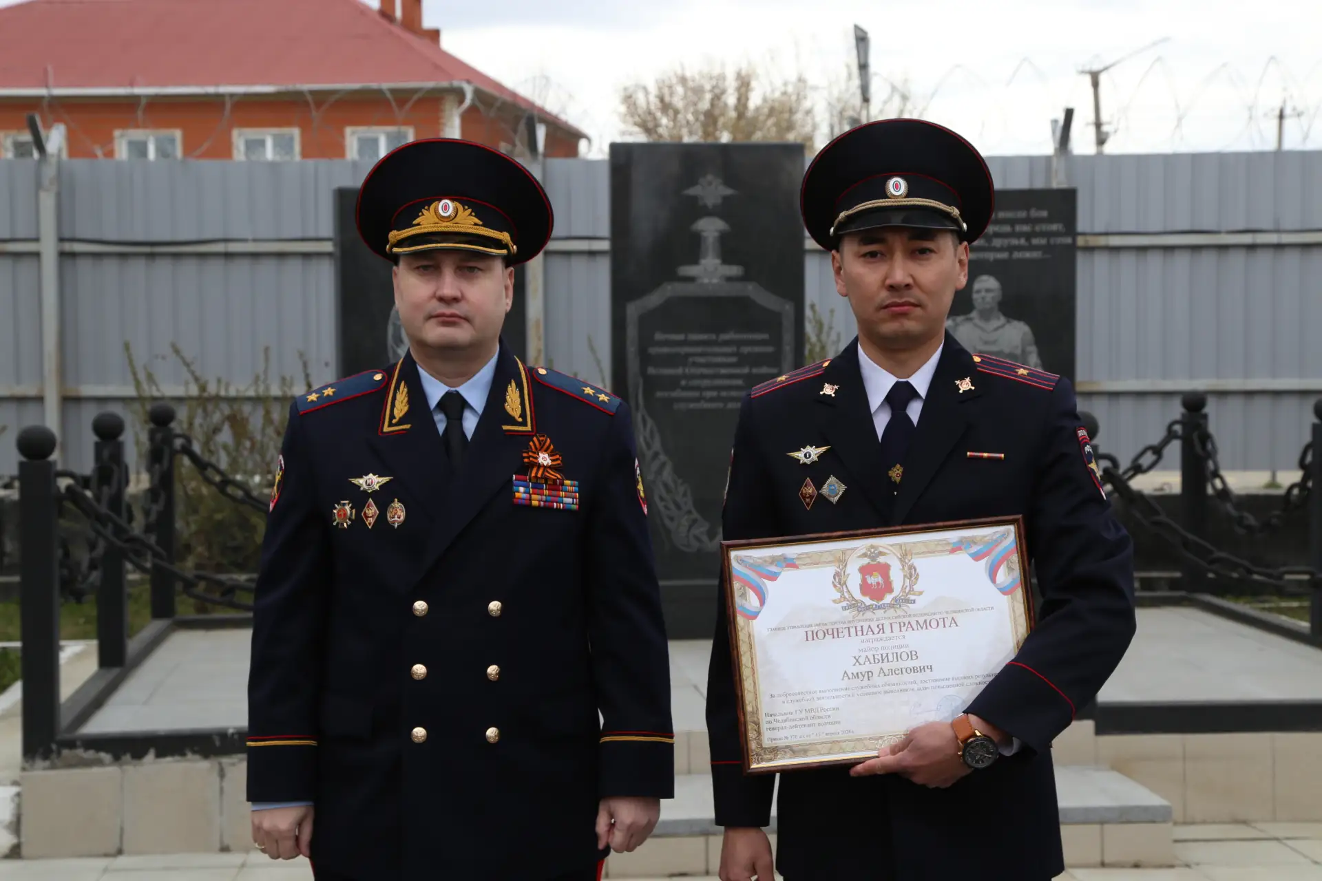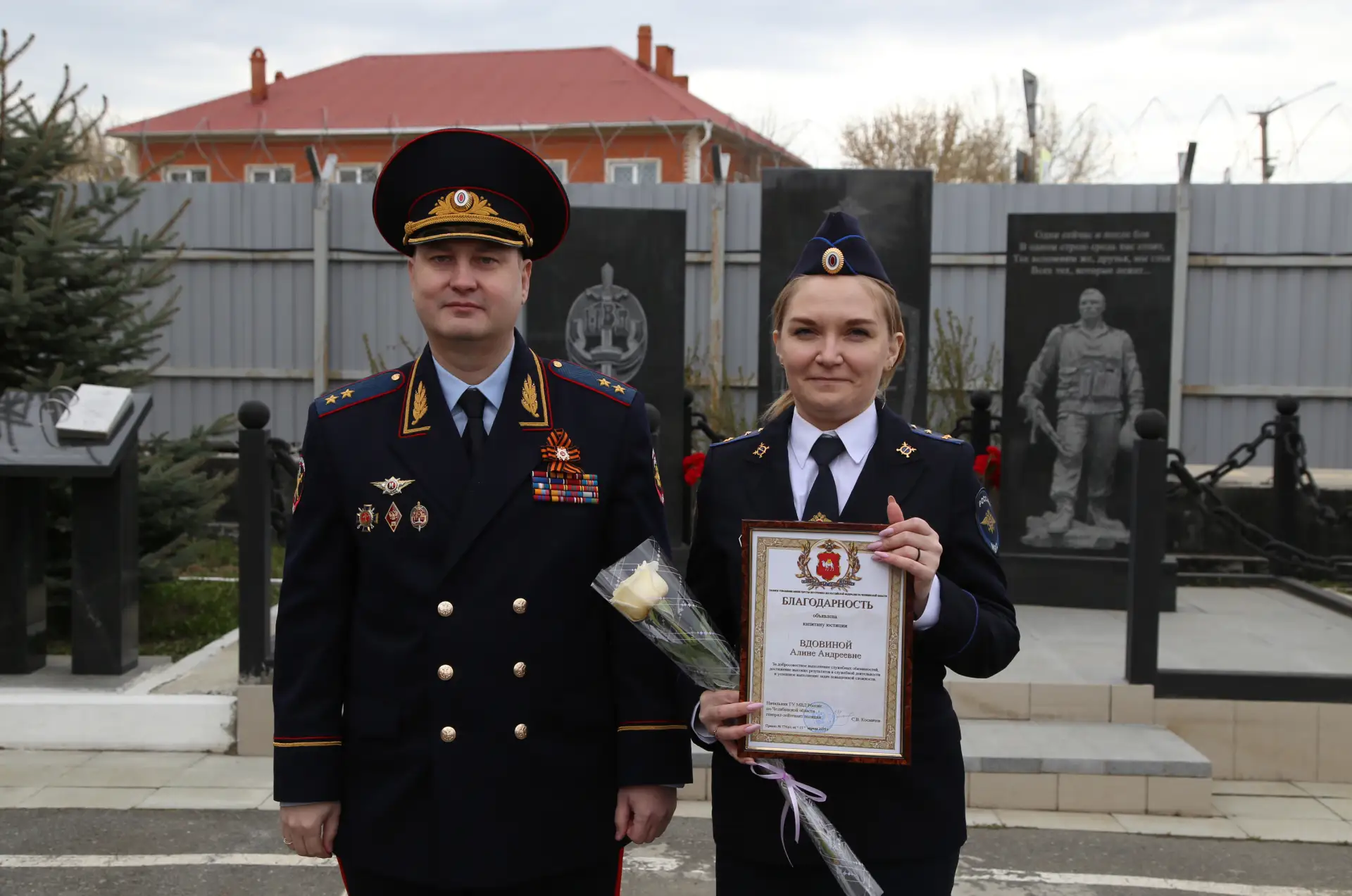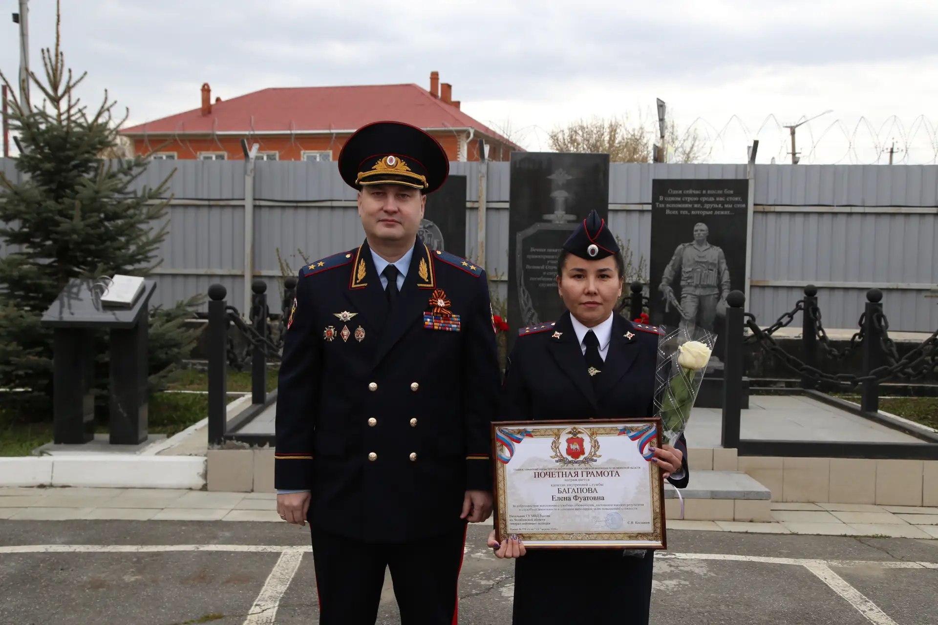 По традиции свой визит главный полицейский региона начал с возложения цветов к мемориальному комплексу. Он состоит из трёх памятных стел — в честь ветеранов Великой Отечественной войны, сотрудников МВД, погибших при исполнении служебного долга, а также участников контртеррористических операций.
