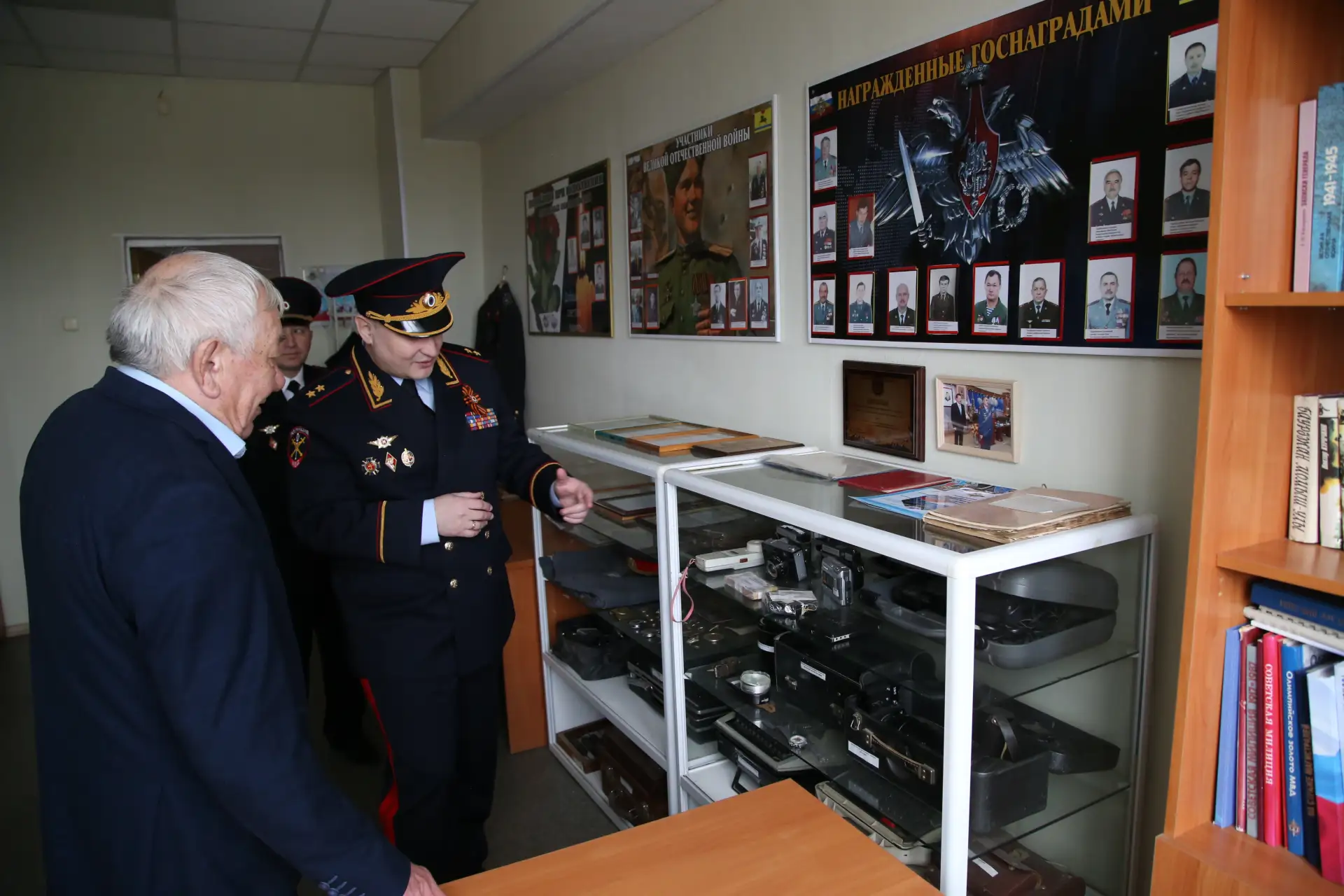 В музее истории почётный ветеран ОМВД, председатель Общественного совета Мансур Сафаров рассказал Сергею Валерьевичу об истории создания музея и его экспонатах, многие из которых являются уникальными.