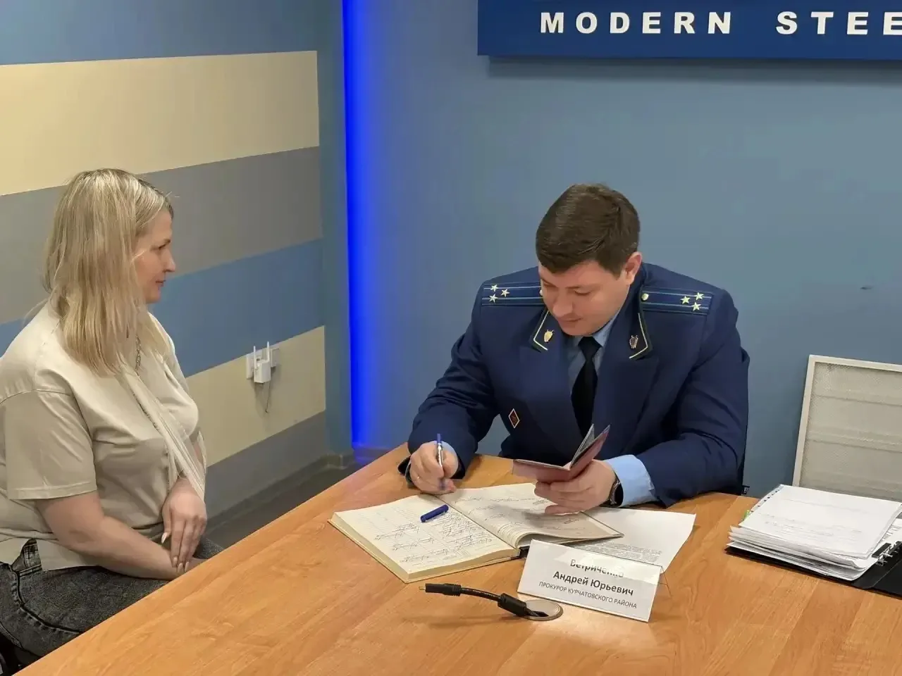В рамках предстоящего Всемирного дня охраны труда прокурор Курчатовского района г. Челябинска Андрей Ветриченко выехал на предприятие района - ООО "Челябинский завод современных конструкций».