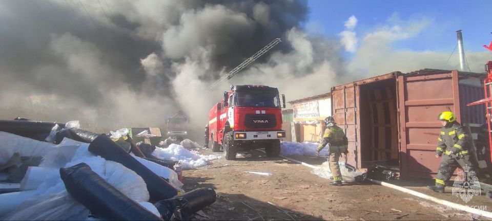 Возгорание произошло в двухэтажном мебельном цехе и металлическом ангаре. Огонь охватил 1000 квадратных метров. Предварительно, никто не пострадал. На месте работают более 70 специалистов и 19 единиц техники.ДОП: пожар локализован на...