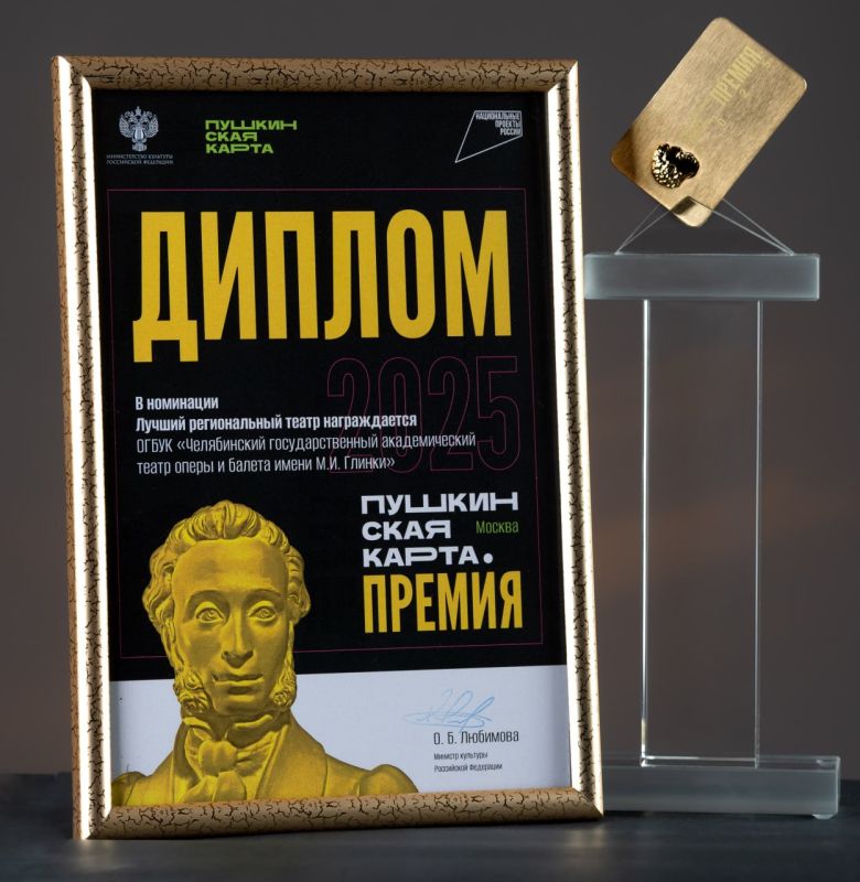 В Бетховенском зале Большого театра России состоялась церемония вручения Премии за вклад в развитие программы «Пушкинская карта». Торжество прошло под руководством заместителя председателя Правительства РФ Татьяны Голиковой.Челябинский театр оперы и...