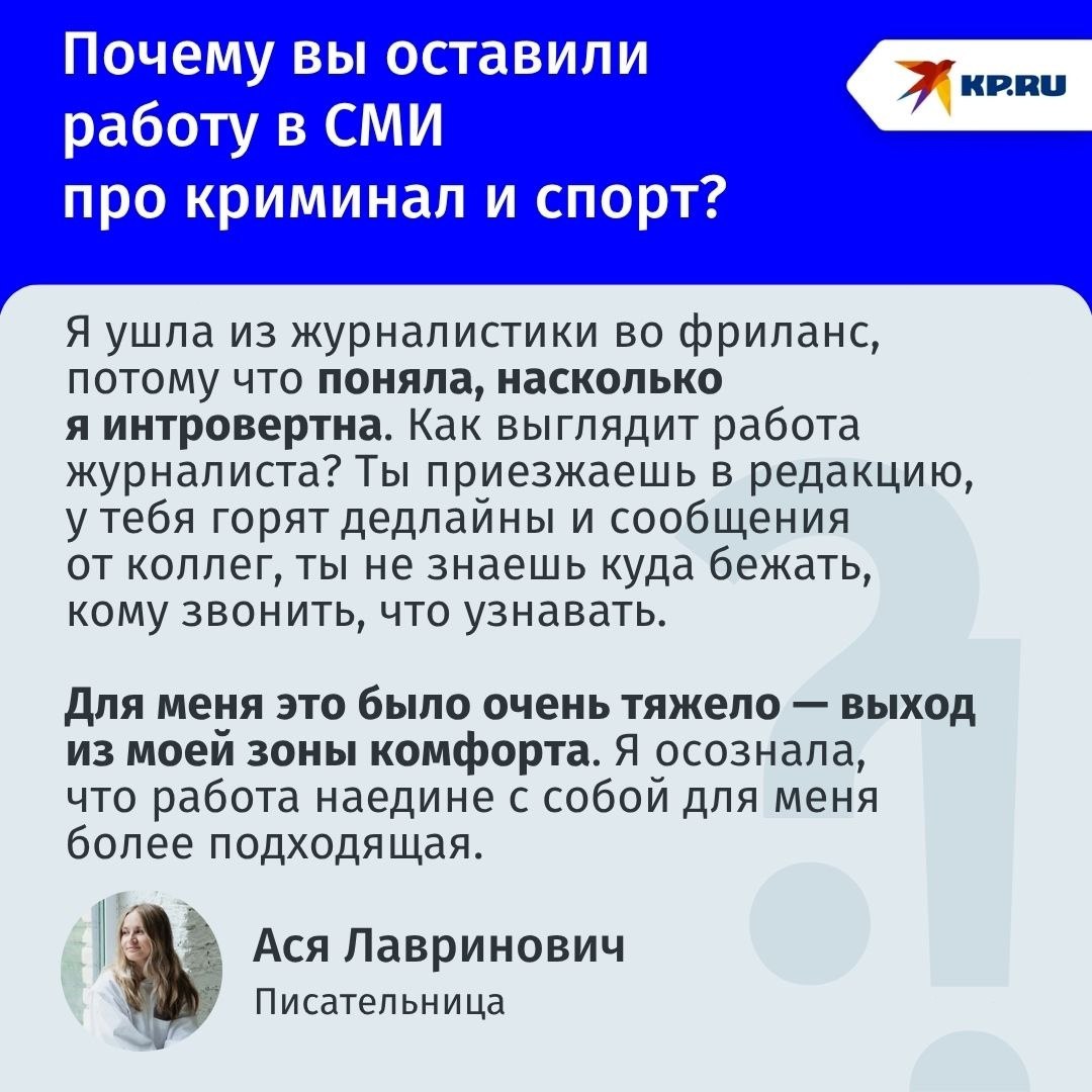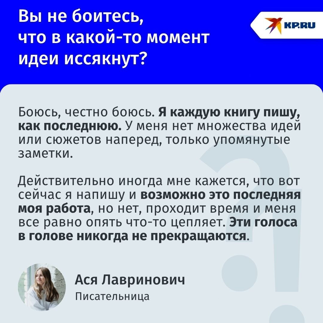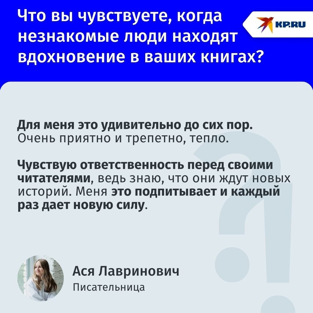 Ася Лавринович — писательница родом из Челябинска, автор популярных романов о любви в жанре young adult. Два года назад по ее книге «Загадай любовь» был снят одноименный сериал. Журналист «Комсомолки» пообщалась с Асей Лавринович на «Рыжем фесте», который прошел в Челябинске с 26 по 28 сентября.