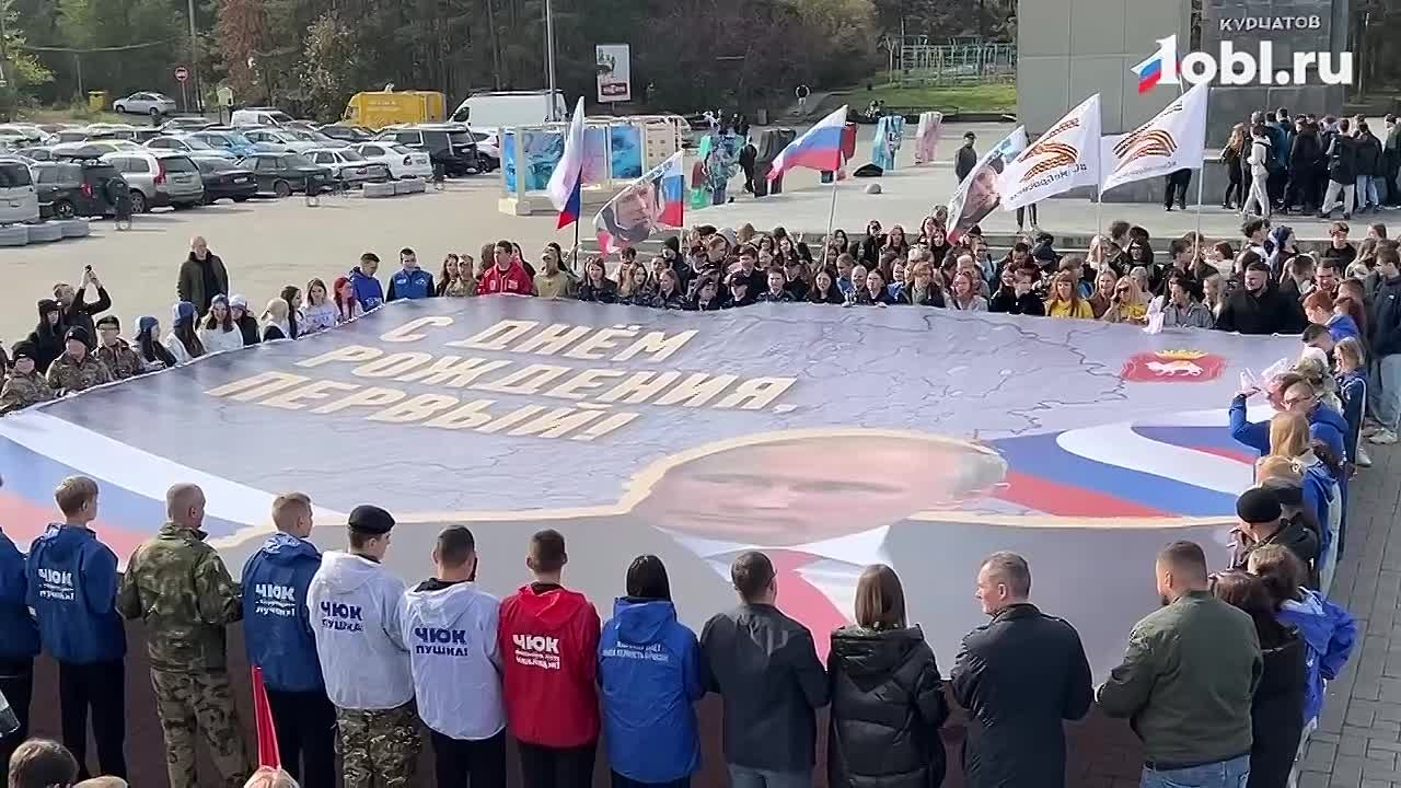 Огромное полотно с надписью: «С днём рождения, Первый!» развернули в Челябинске