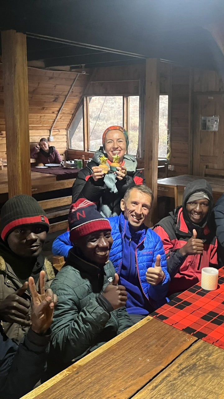 На день рождения Елена Павлова получила неожиданный подарок. Она поставила на кексы свечки, положила на тарелку привезенные из России шоколадки и пригласила танзанийскую команду на чай в ледяную столовую. А в ответ ей вручили уникальный торт.