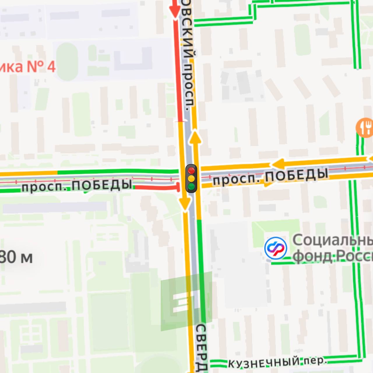 Сегодня в полночь начнутся работы на пересечении пр. Победы и Свердловского пр. Светофор включат, когда рабочие все закончат. Во сколько это будет неизвестно.