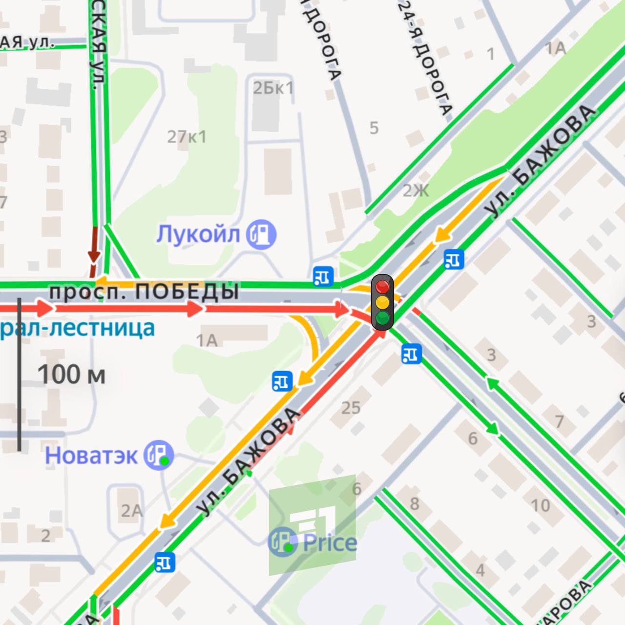 С 9:30 перестанет работать светофор на перекрёстке пр. Победы, ул. Бажова и Танкистов. Время окончания работ также неизвестно.