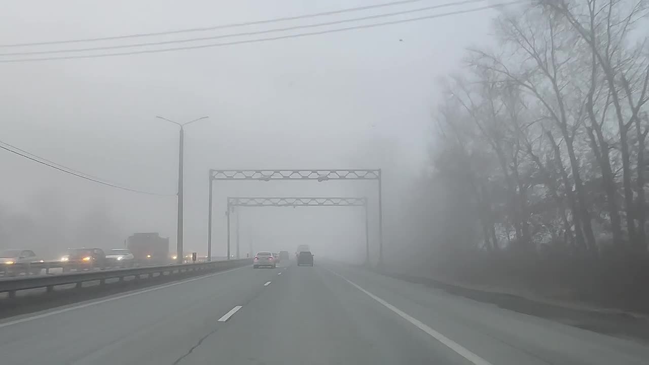 Такая дорога сейчас на въезде в Челябинск со с стороны Екатеринбурга. На трассе местами образовался плотный туман.